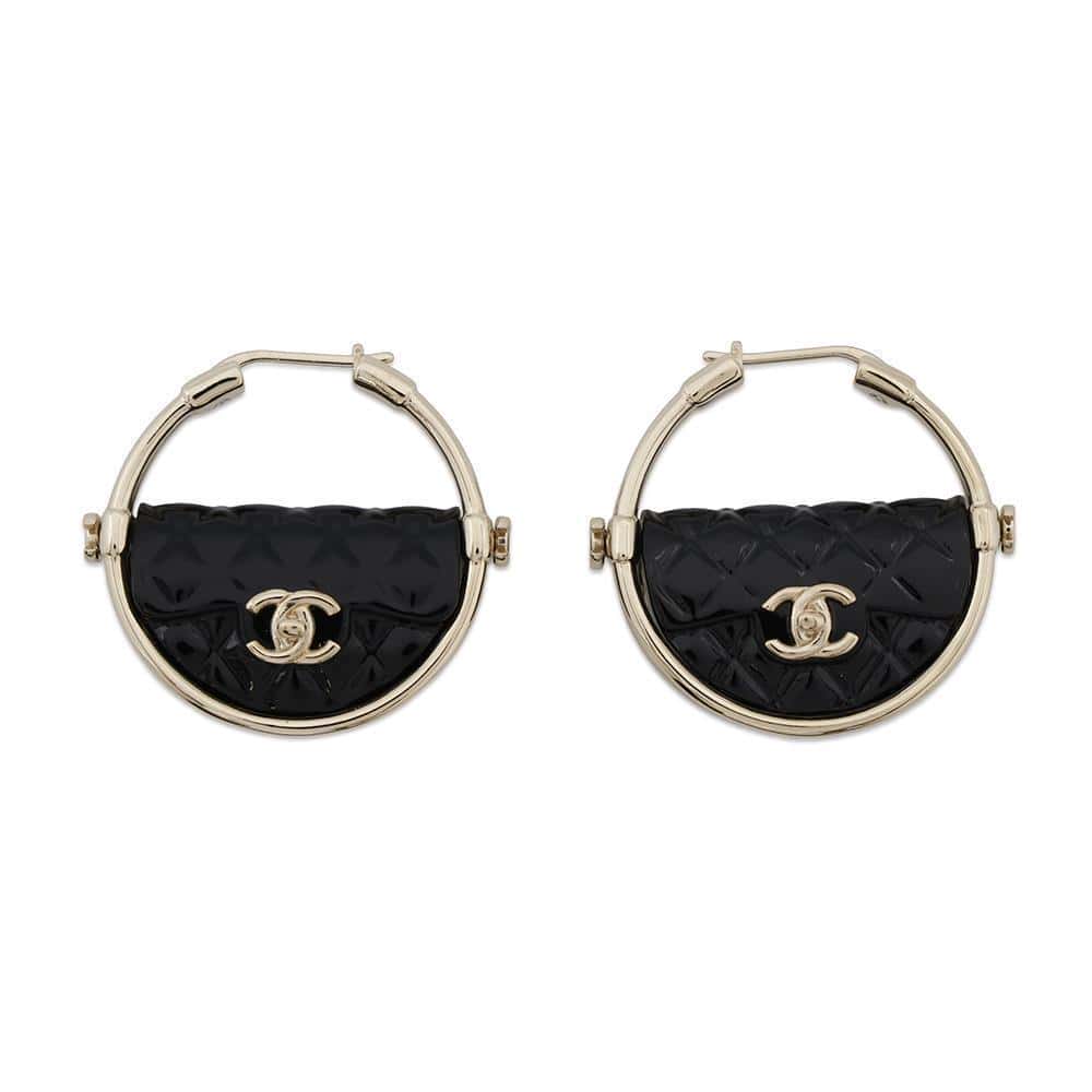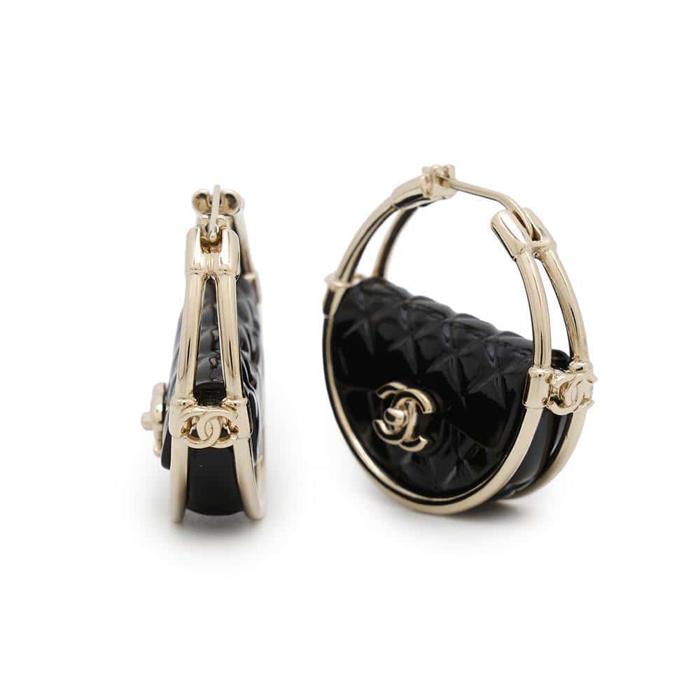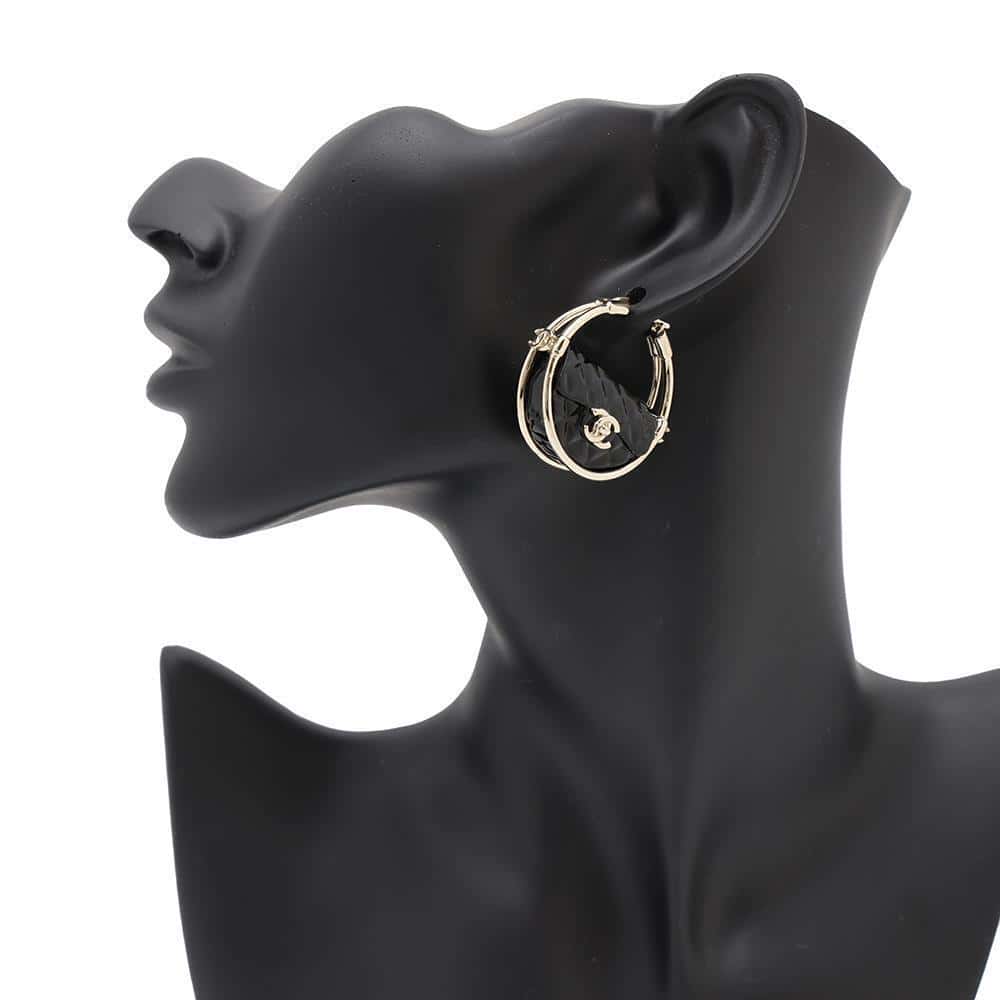 CHANEL CC Logo hoop earrings BlackAB9850 Metal