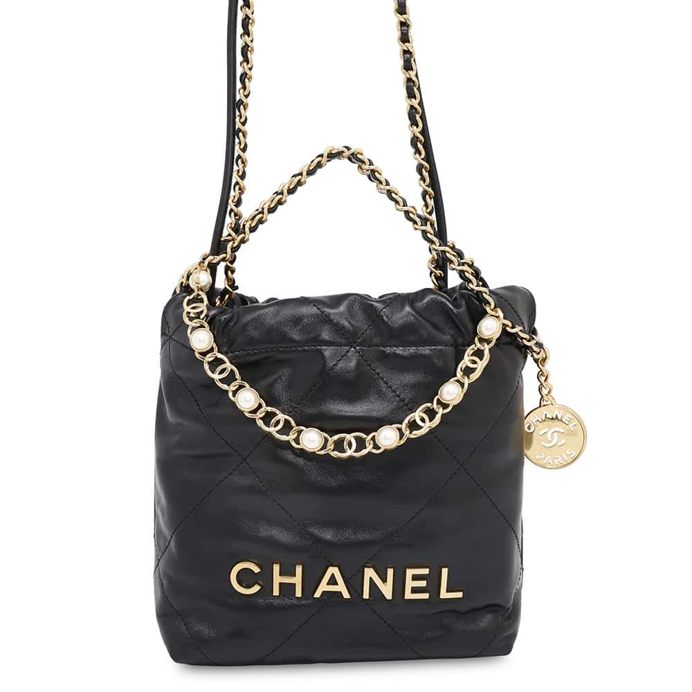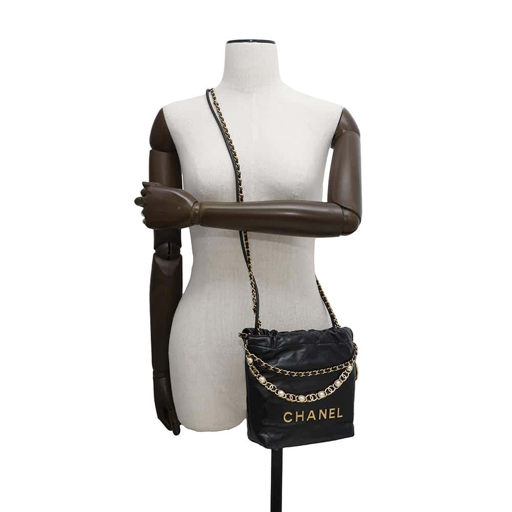 CHANEL CHANEL22 Pearl/Logo Chain 2WAY Shoulder Bag BlackAS3980 Shiny Calf Leather Size Mini