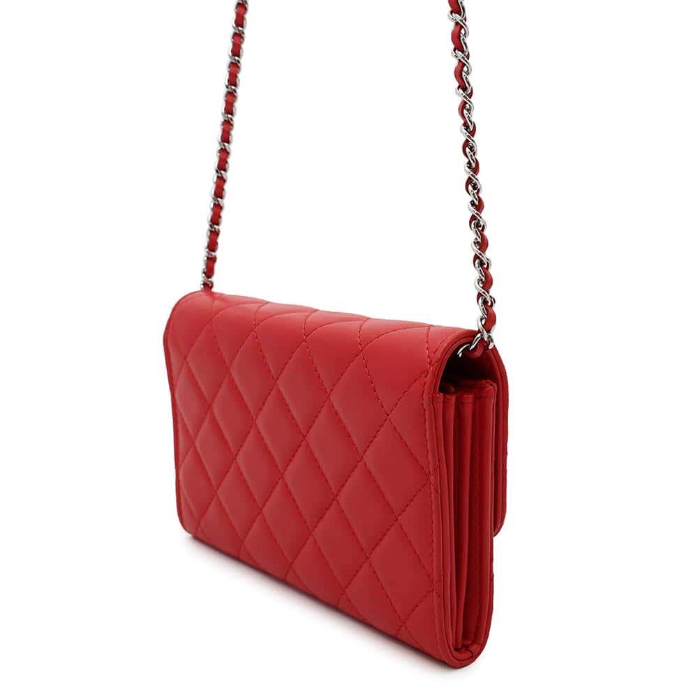 CHANEL Matelasse Chain wallet Red LambskinCHANEL Matelasse Chain wallet Red Lambskin
