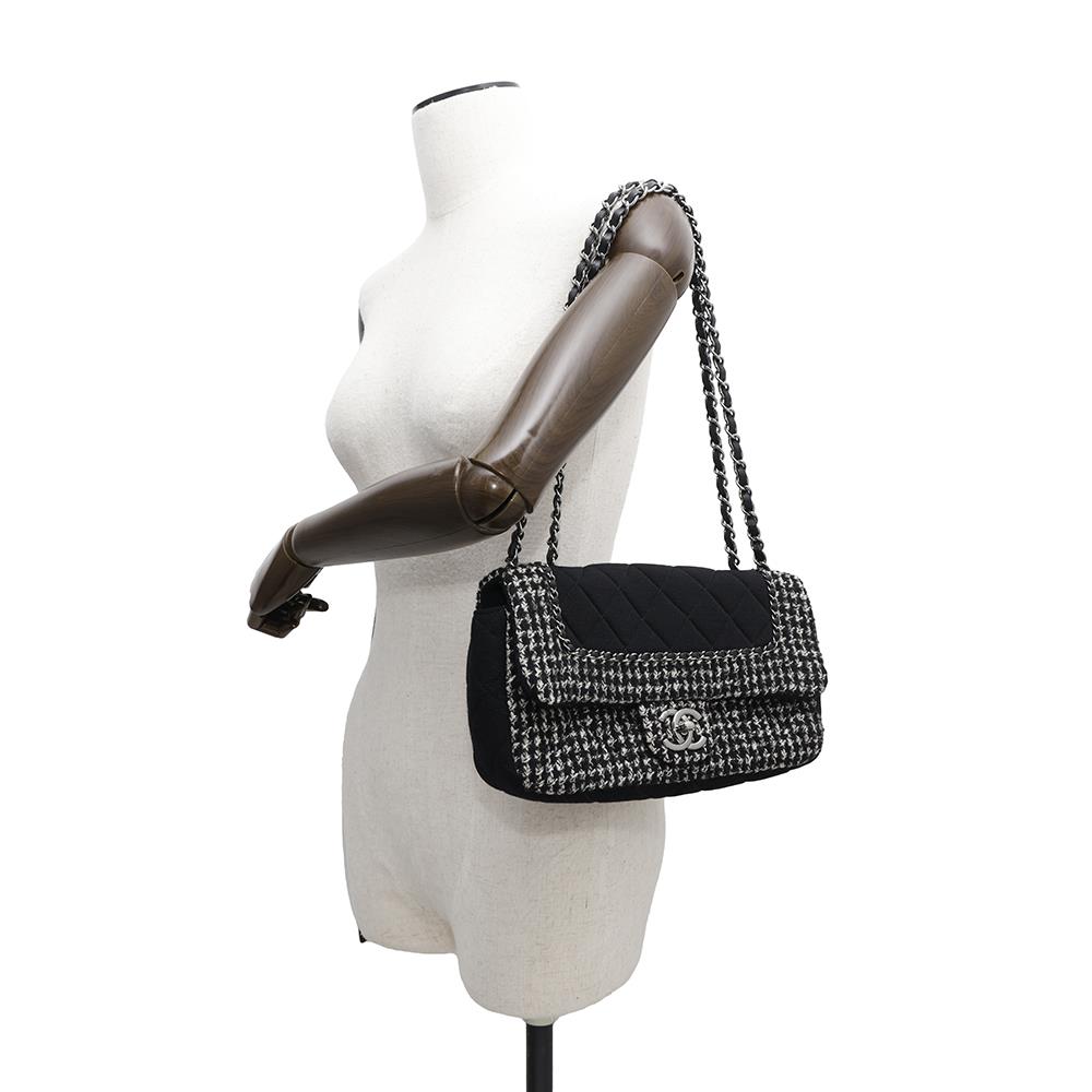 CHANEL Matelasse ChainShoulder Black/WhiteA92533 Tweed Cotton Jersey