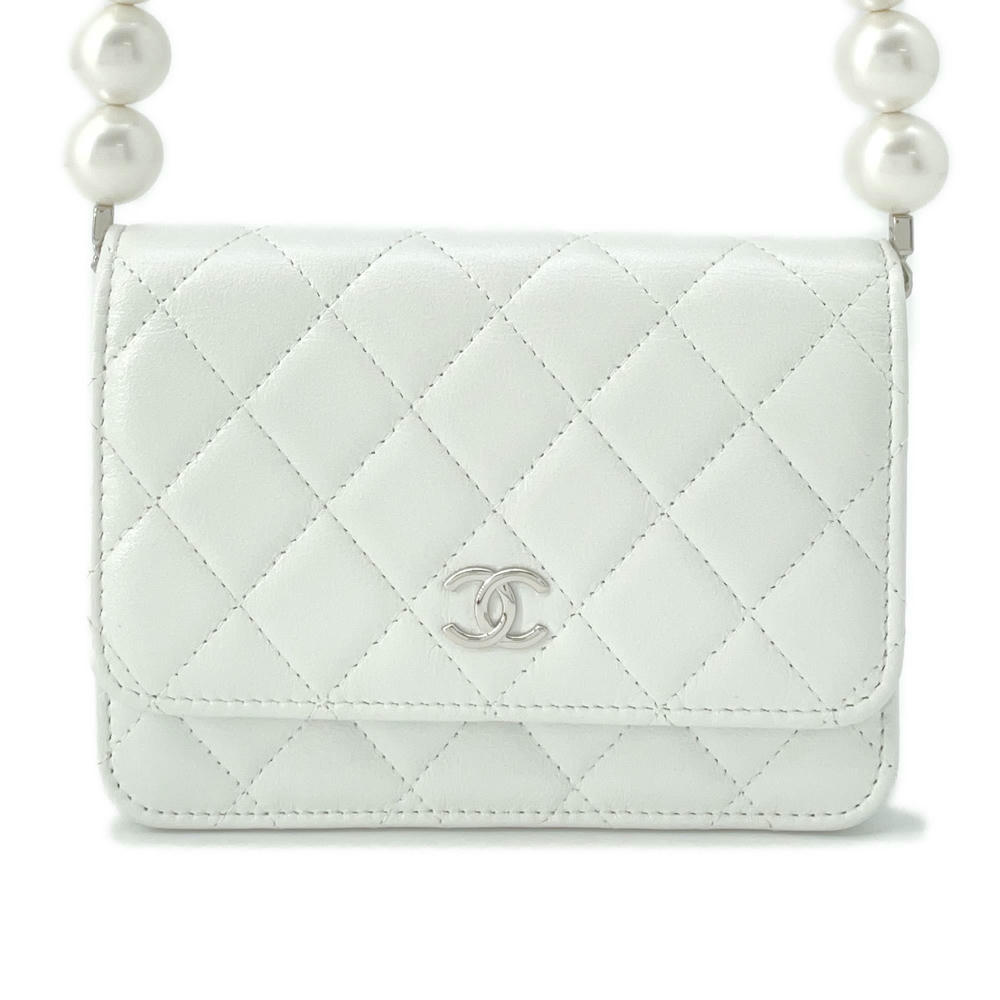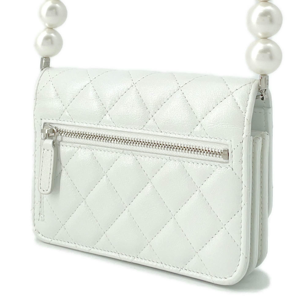 CHANEL Matelasse Pearl Shoulder Wallet WhiteAP1839 Calf Leather