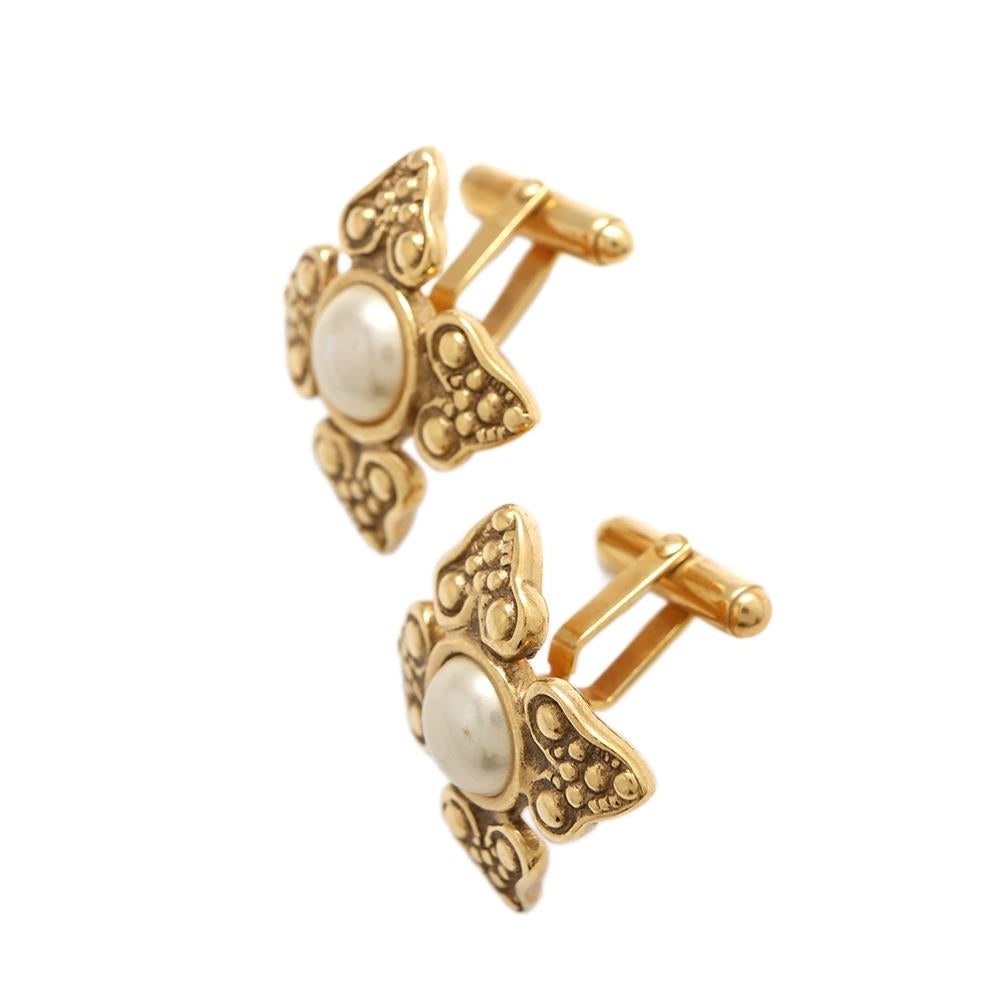 CHANEL Faux Pearl Cufflinks Gold MetalCHANEL Faux Pearl Cufflinks Gold Metal