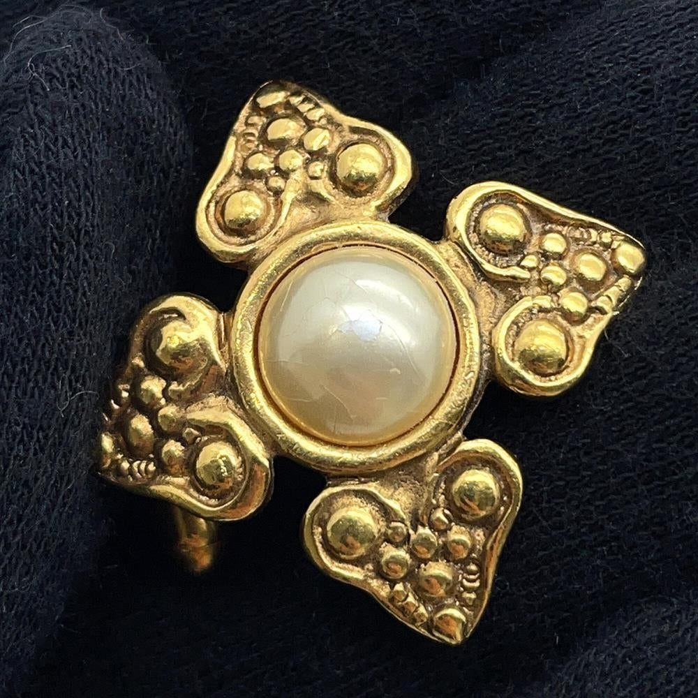 CHANEL Faux Pearl Cufflinks Gold Metal