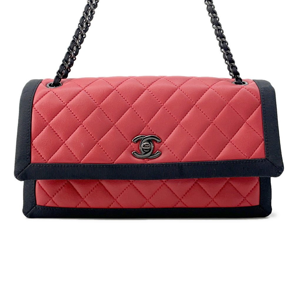 CHANEL Matelasse ChainShoulder Bag Red/Black Lambskin