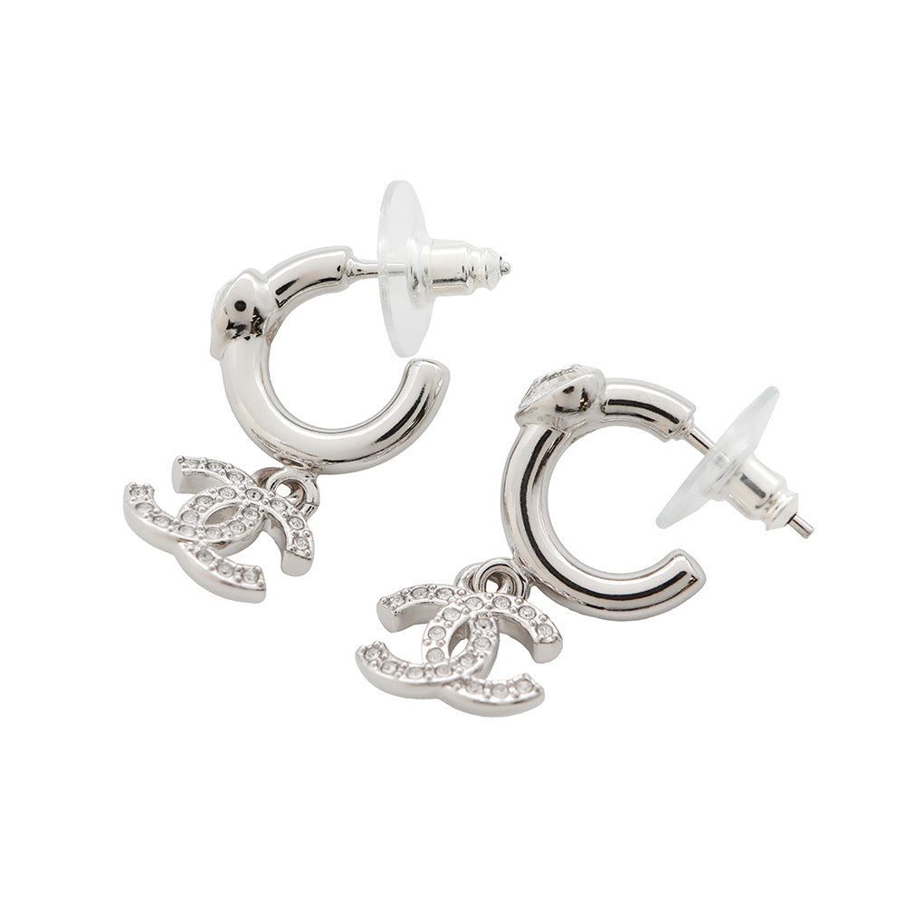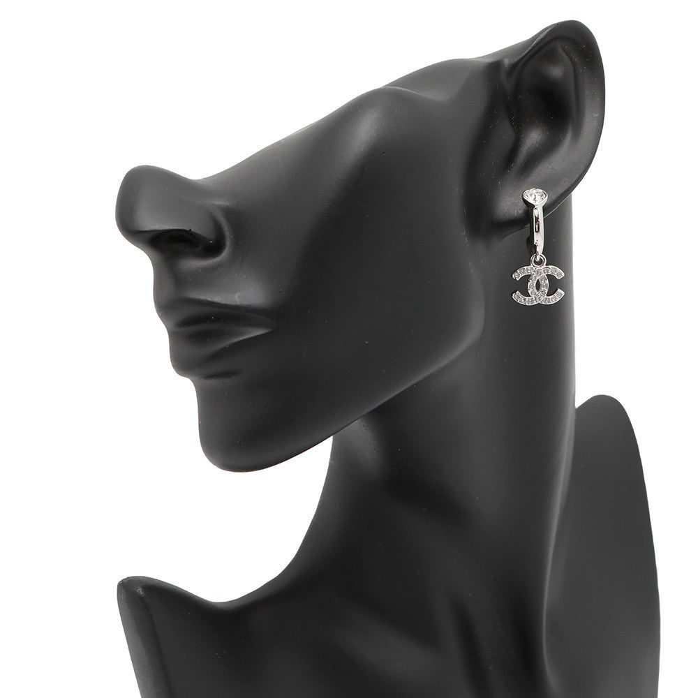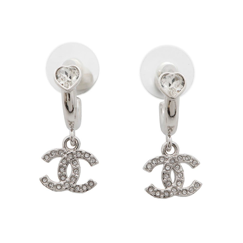 CHANEL CC Logo Heart Earrings SilverABF778 Metal Rhinestone