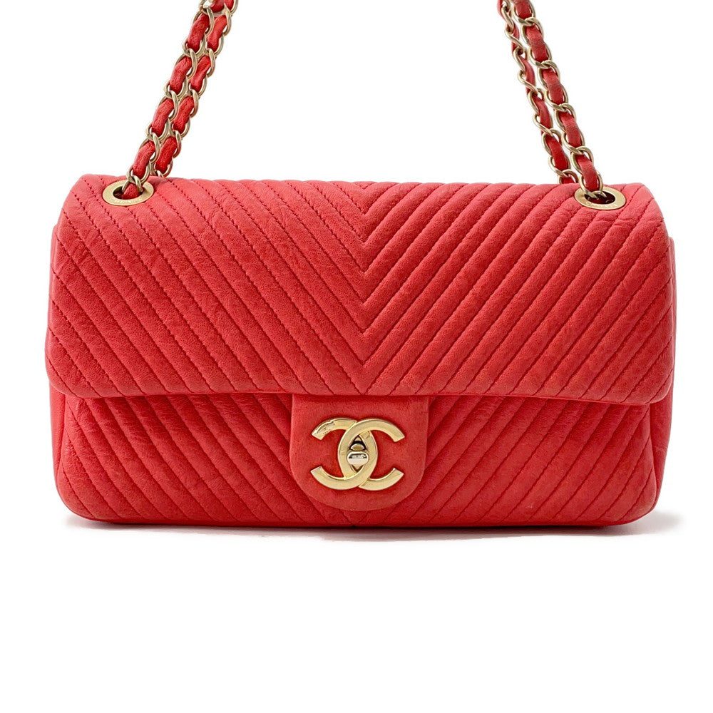CHANEL Chevron ChainShoulder RedA92087 Leather