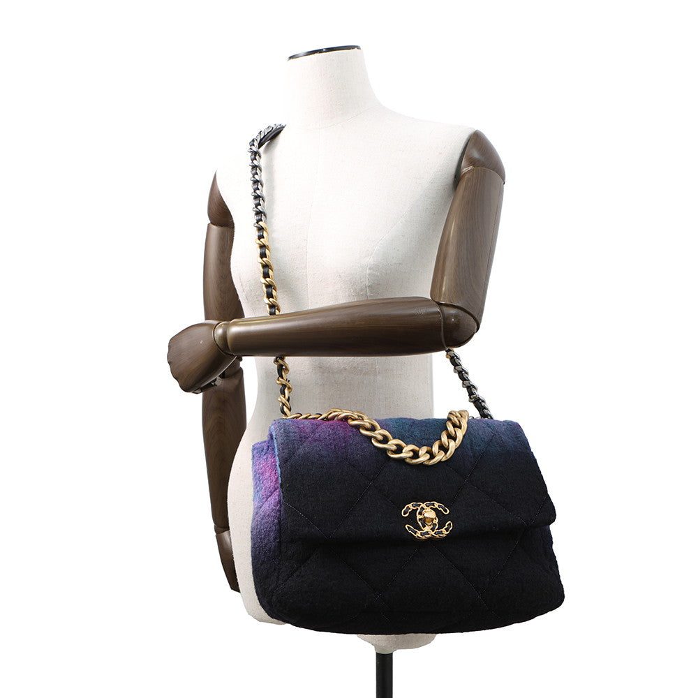CHANEL CHANEL 19 ChainShoulder Bag Purple/Blue/BlackAS1161 Wool Size LargeCHANEL CHANEL 19 ChainShoulder Bag Purple/Blue/BlackAS1161 Wool Size Large
