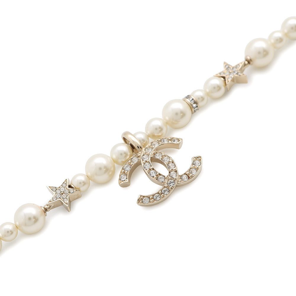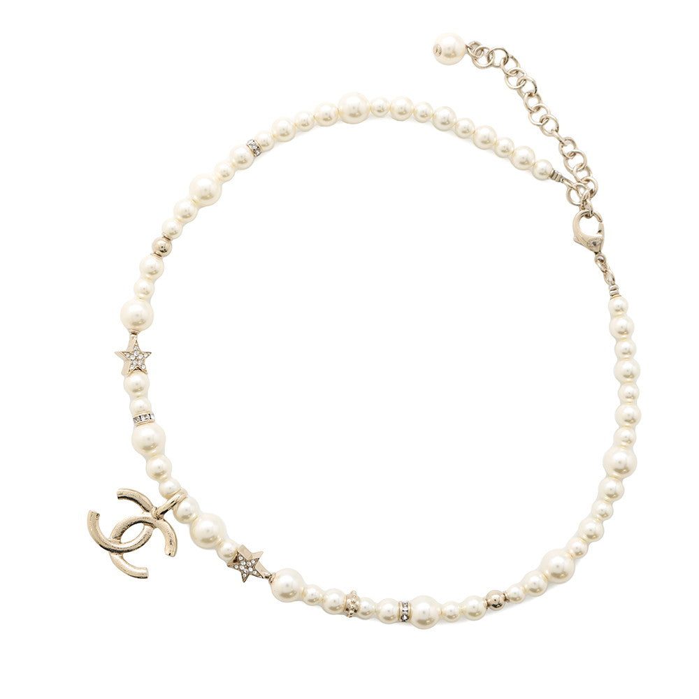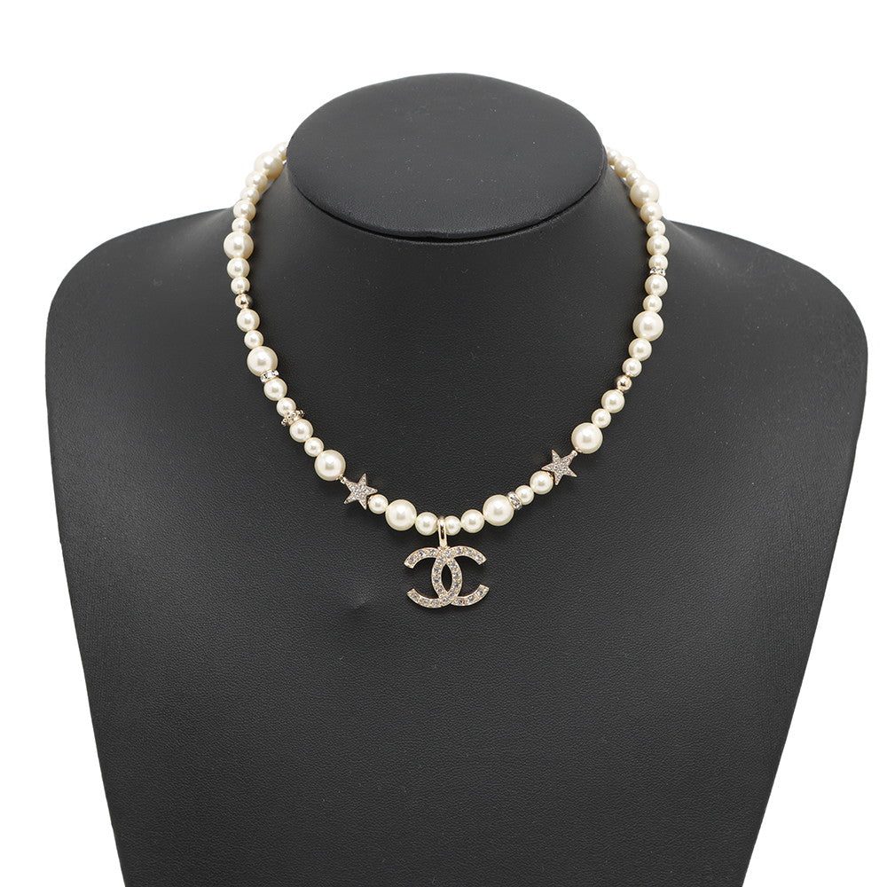 CHANEL CC Logo Star NecklaceABB256 Gold Plated Rhinestone Faux Pearl