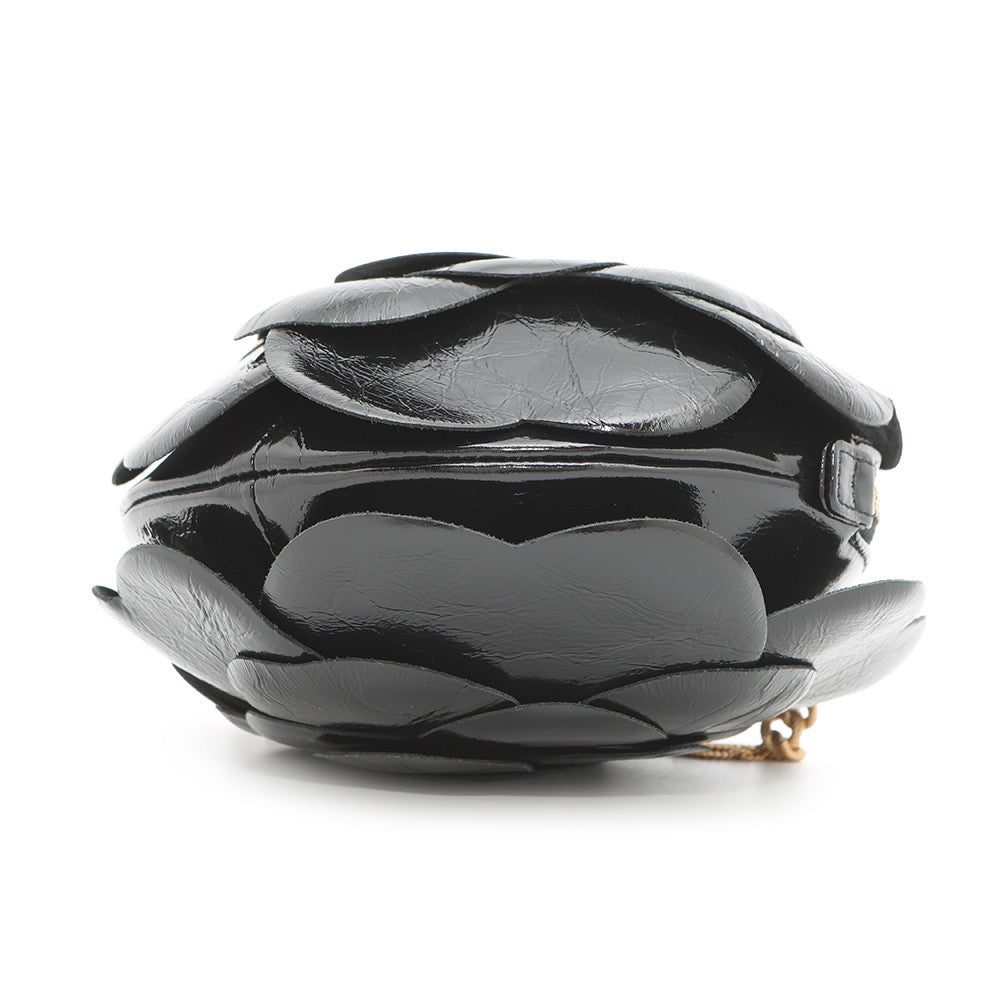 CHANEL Camellia Evening ChainShoulder Bag BlackAS4445 Shiny Aged Calf Leather