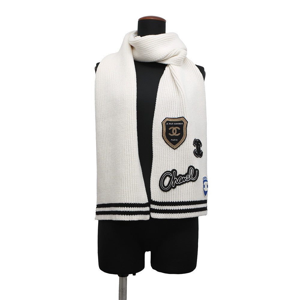 CHANEL Logo Patch Scarf White/BlackAAA409 Cashmere100%