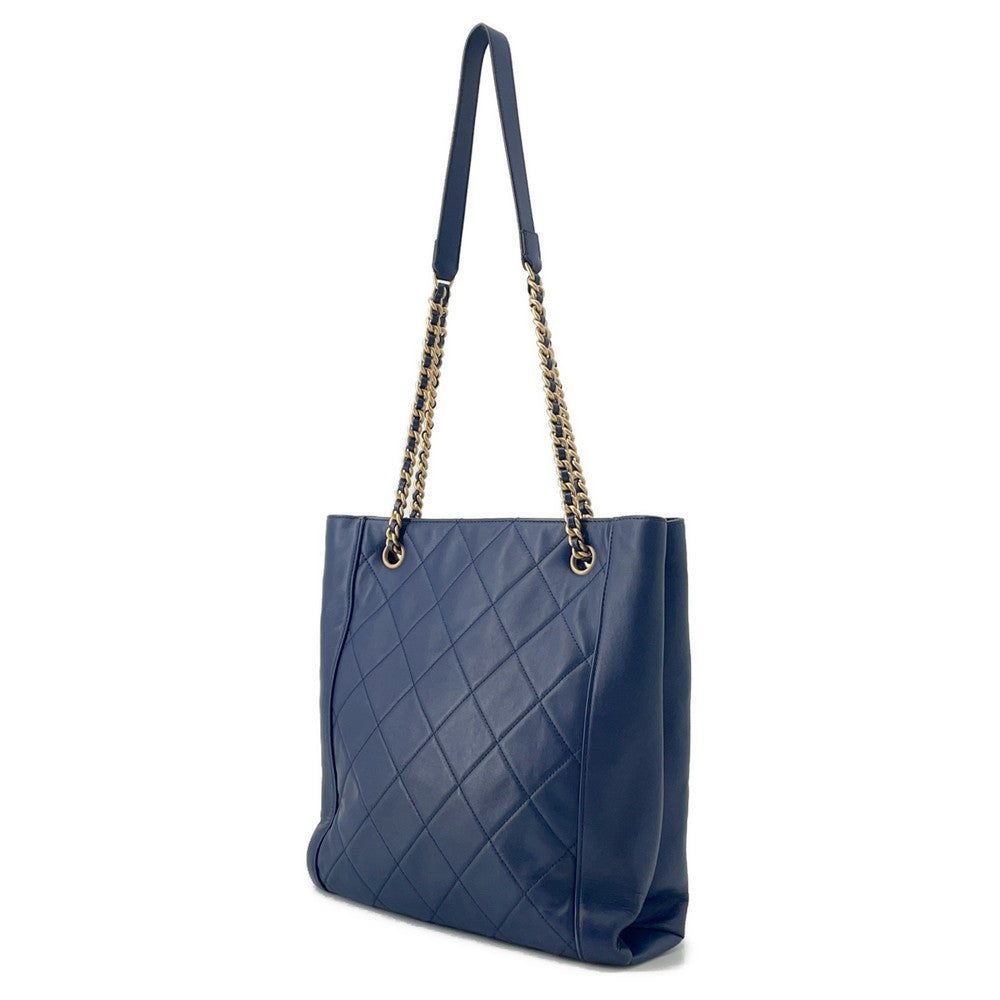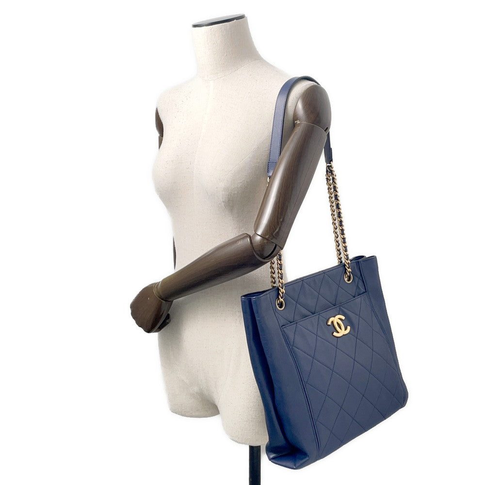 CHANEL Chain Tote Shopping Bag NavyAS2295 Calf Leather Size Small
