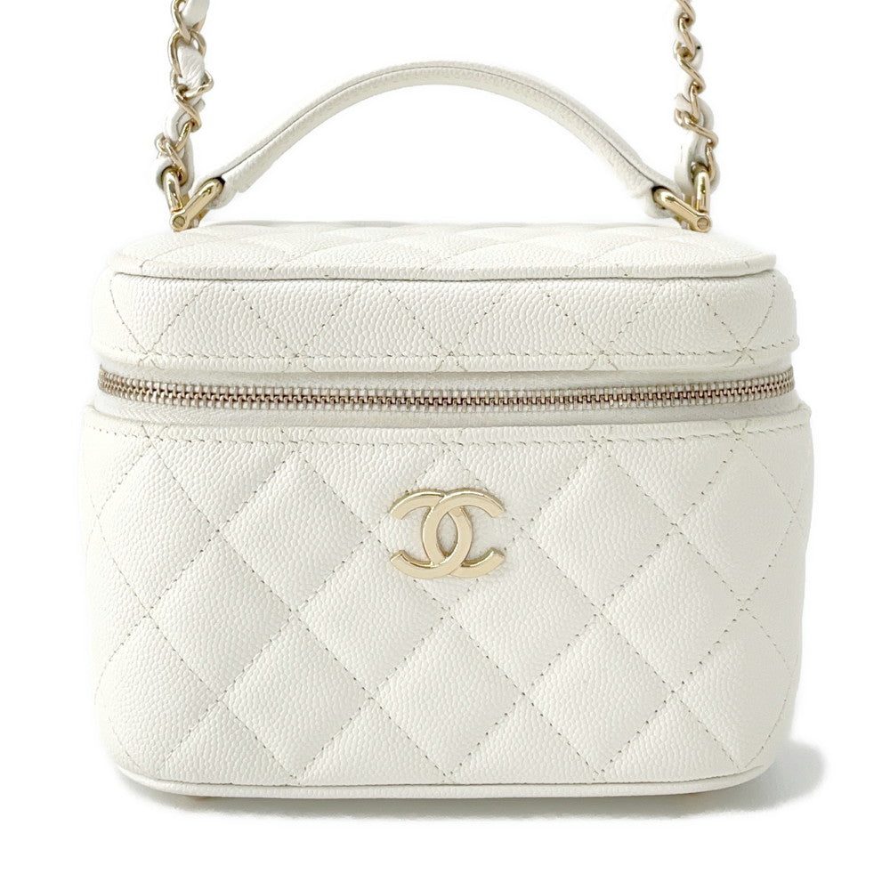 CHANEL Matelasse Top Handle Chain Vanity Bag WhiteAS3171 Caviar Leather Size SmallCHANEL Matelasse Top Handle Chain Vanity Bag WhiteAS3171 Caviar Leather Size Small