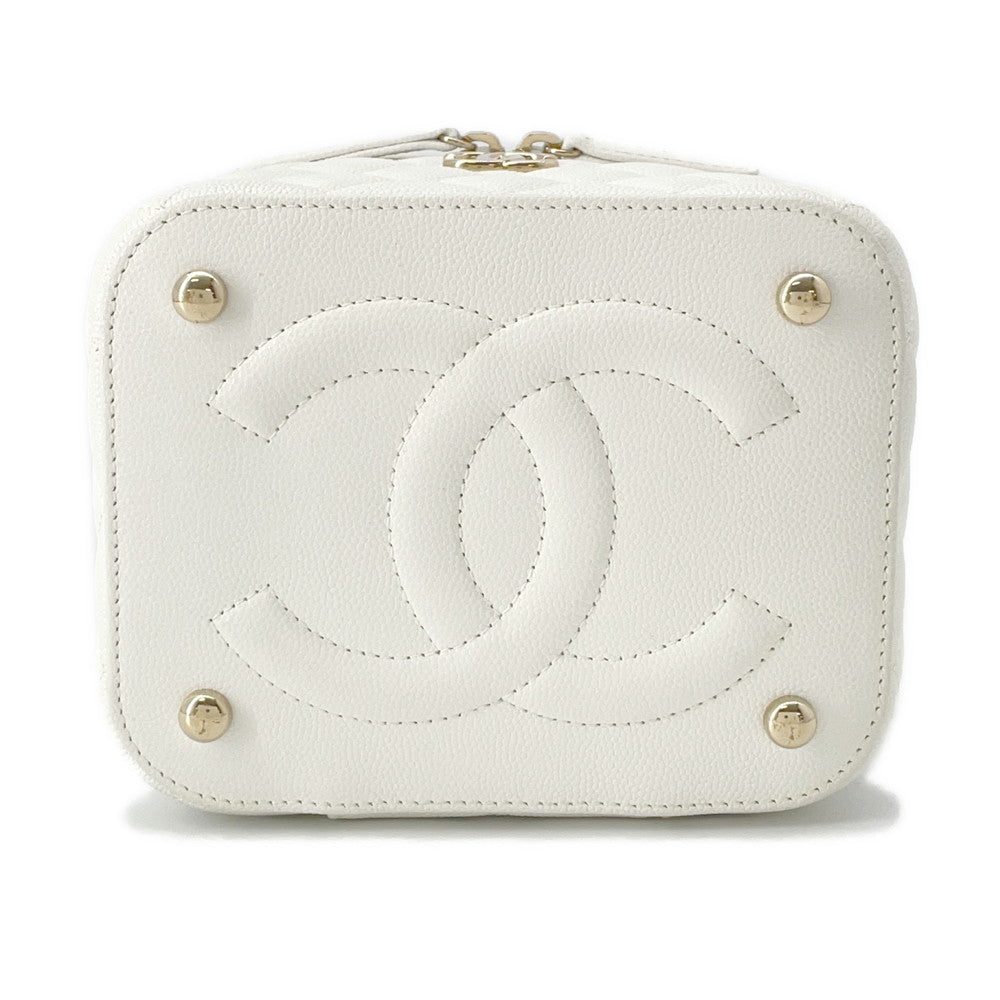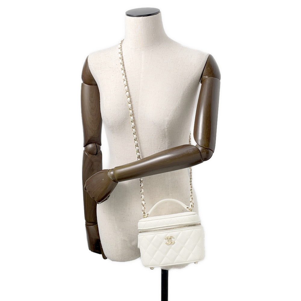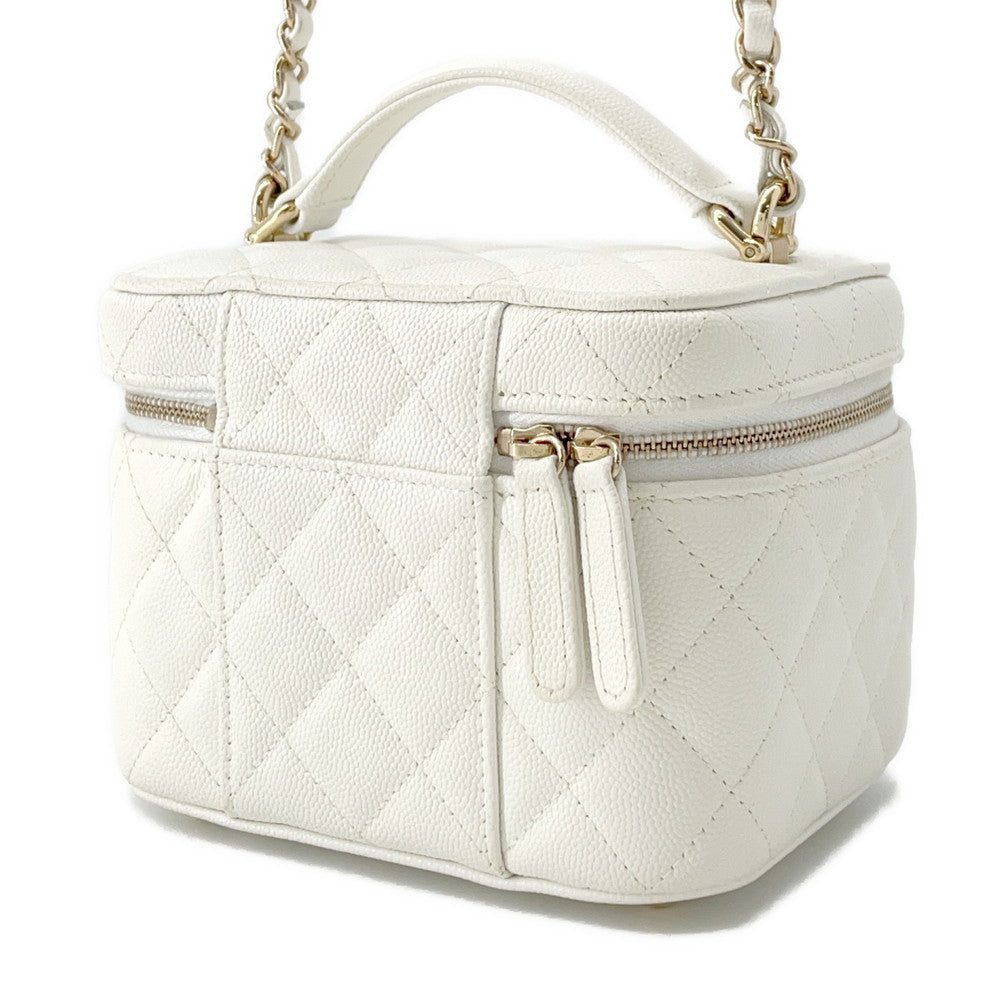 CHANEL Matelasse Top Handle Chain Vanity Bag WhiteAS3171 Caviar Leather Size Small