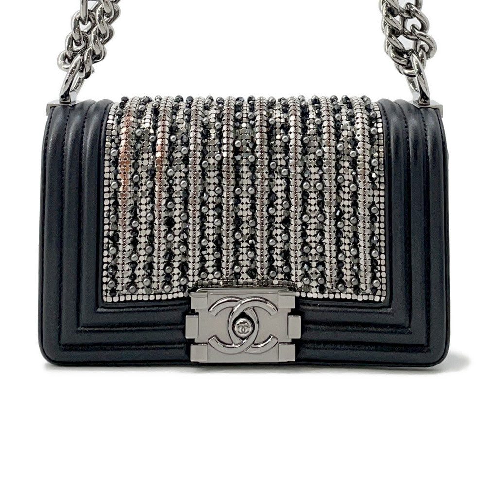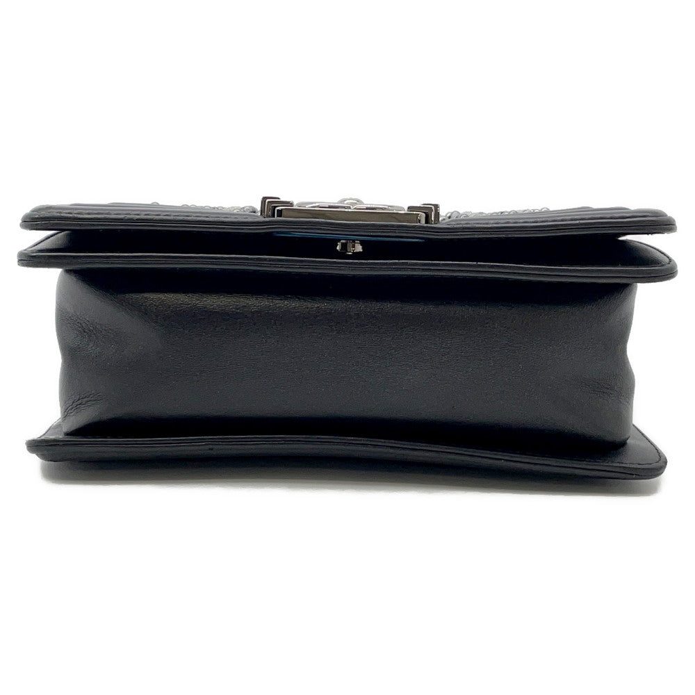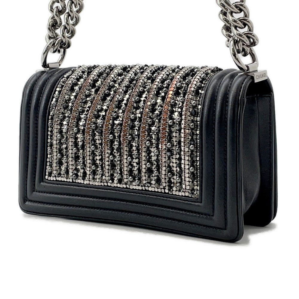 CHANEL Boy Chanel ChainShoulder Bag Black/Silver Lambskin Bijoux Size Small