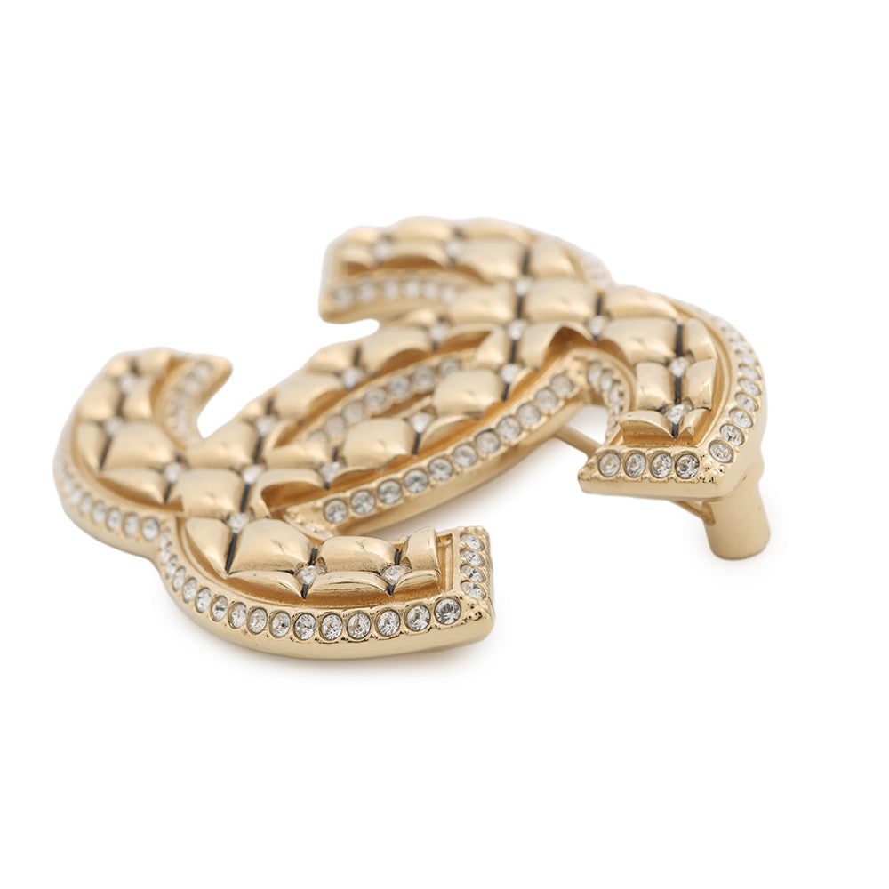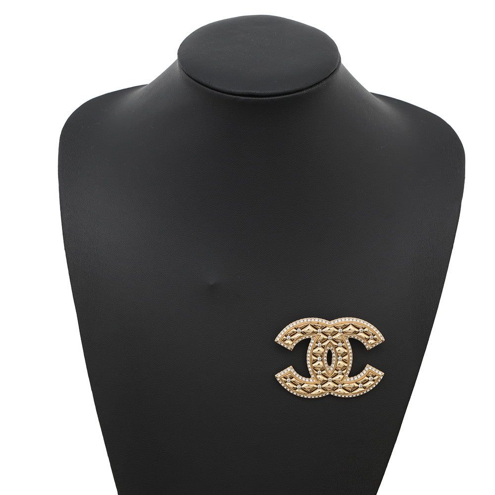 CHANEL CC Logo Matelasse Brooch Metal Rhinestone