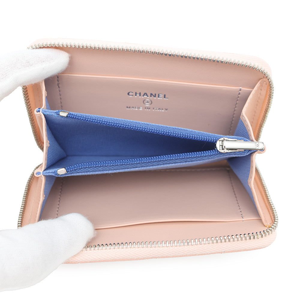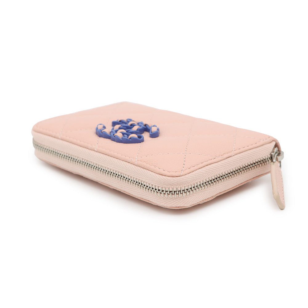 CHANEL Matelasse CHANEL19 Zip Coin Purse Pink/BlueAP3716 Caviar Leather