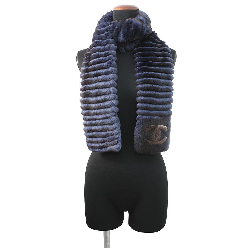 CHANEL Orirag Scarf Navy/Brown Orirag 70% Cashmere30%
