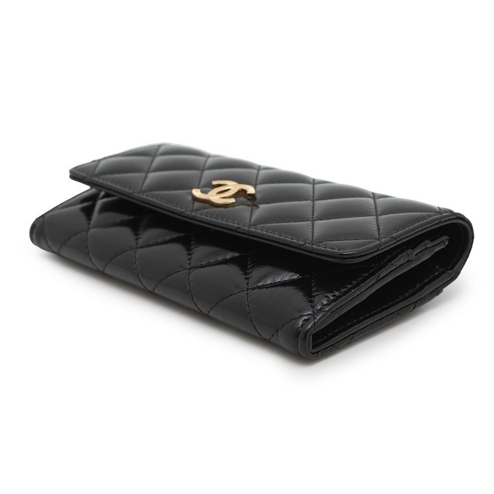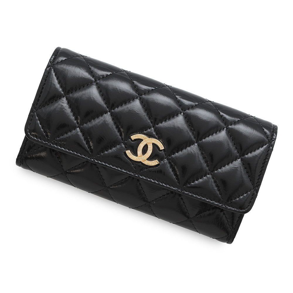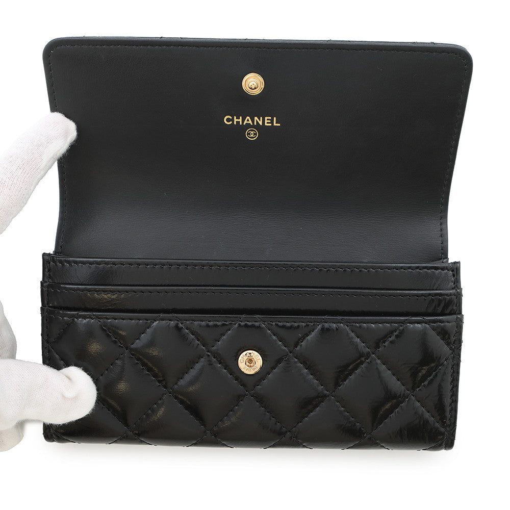 CHANEL Matelasse Long Wallet BlackAP4261 Shiny Calf Leather