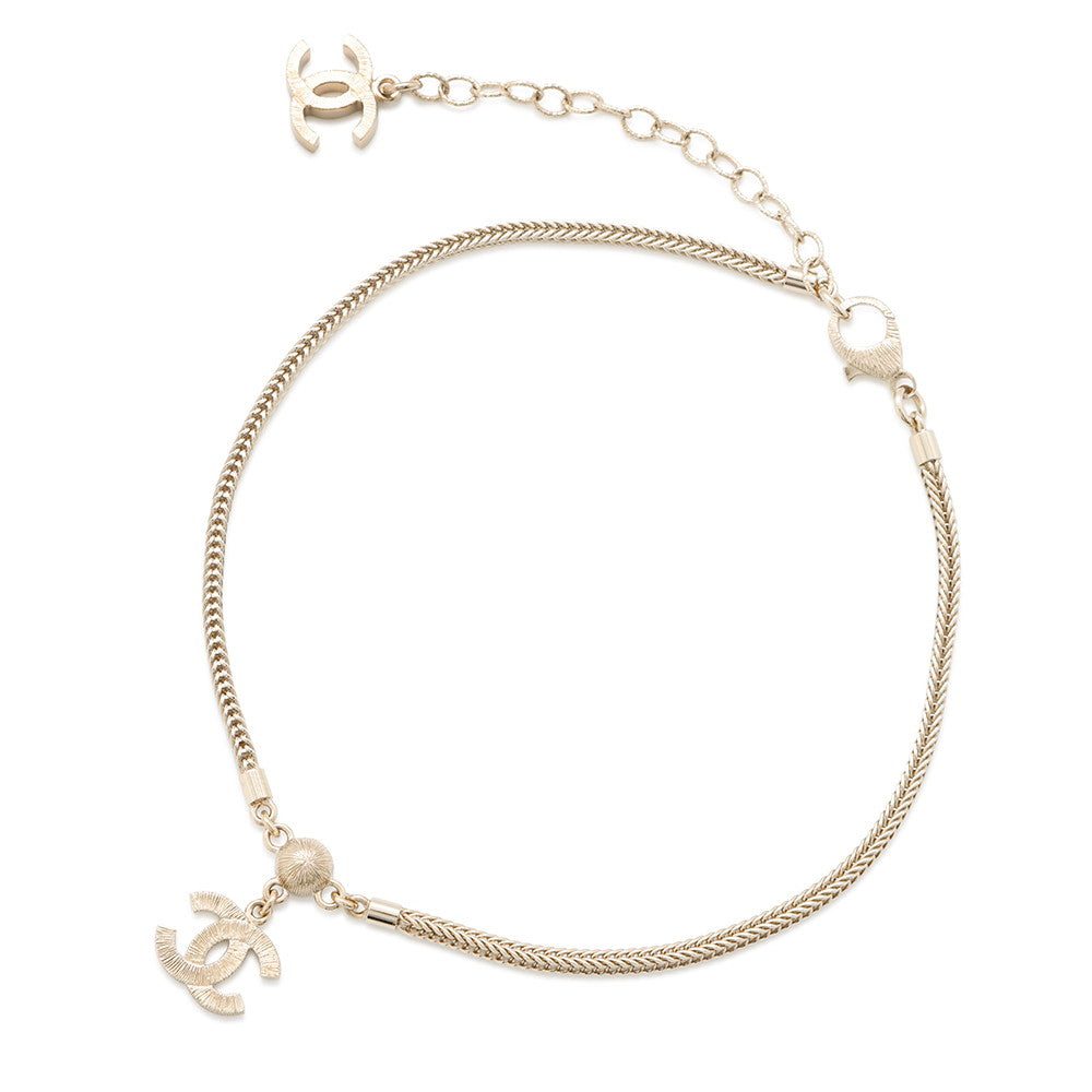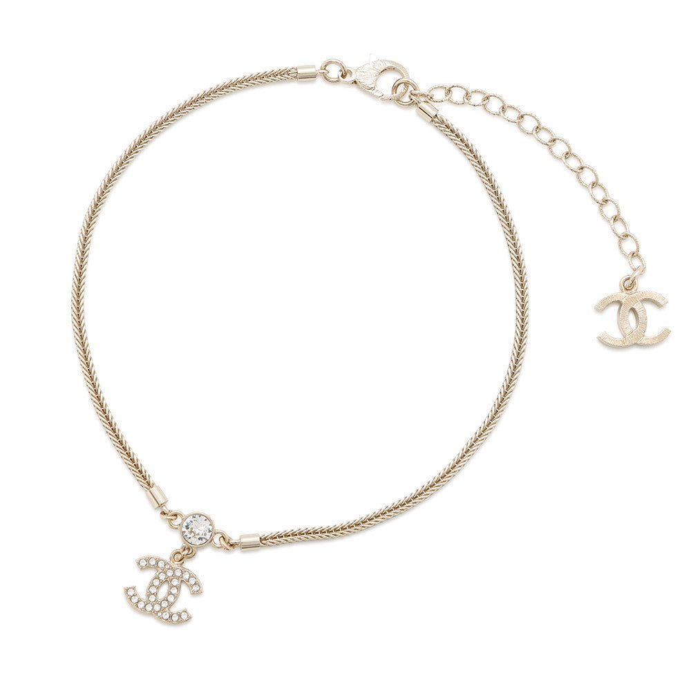 CHANEL CC Logo Necklace ChokerABE544 Rhinestone Gold Plated