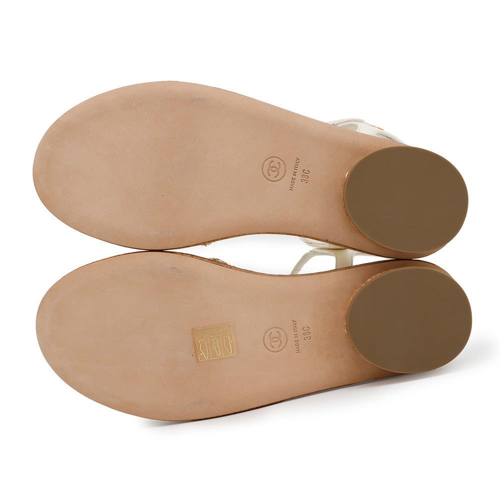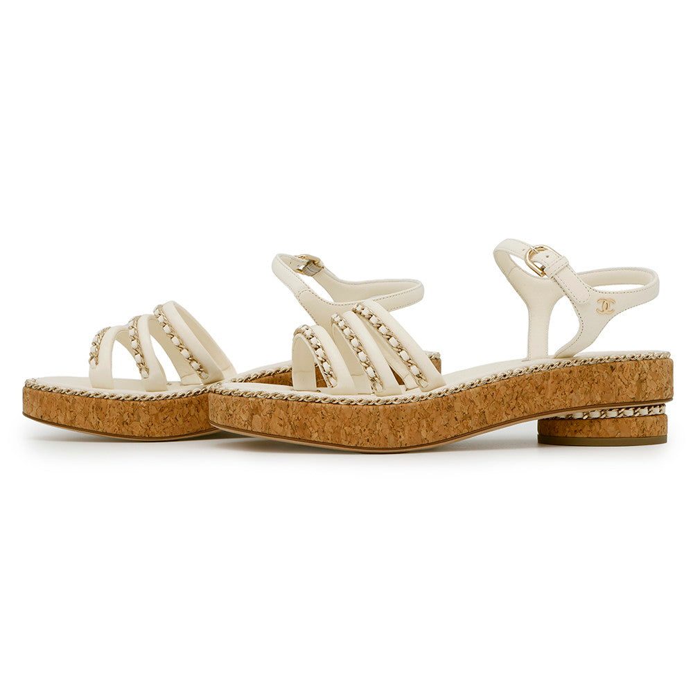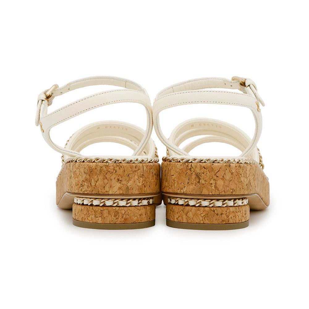 CHANEL CC Logo ChainStrap Sandals WhiteG35779 Leather cork Size 38CCHANEL CC Logo ChainStrap Sandals WhiteG35779 Leather cork Size 38C