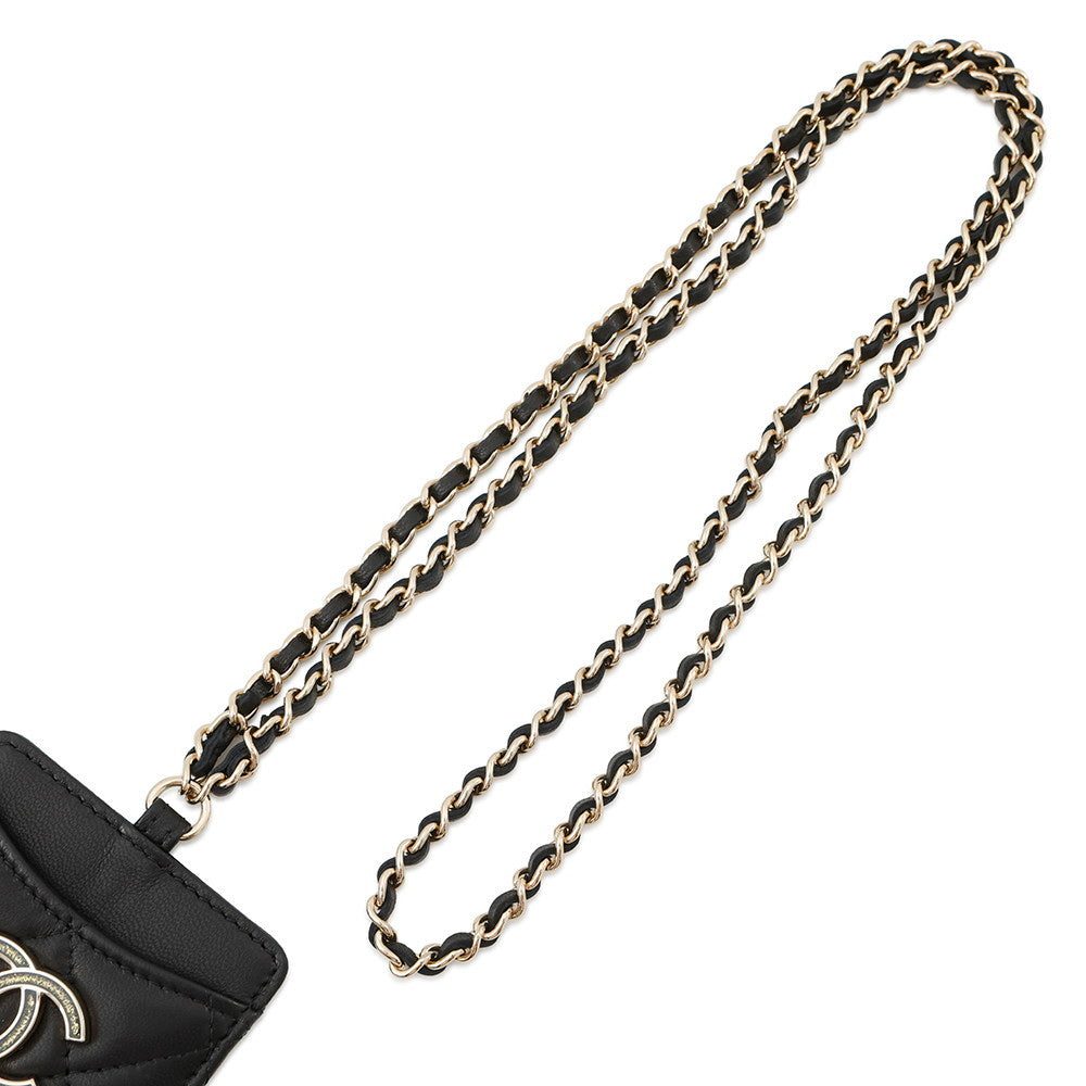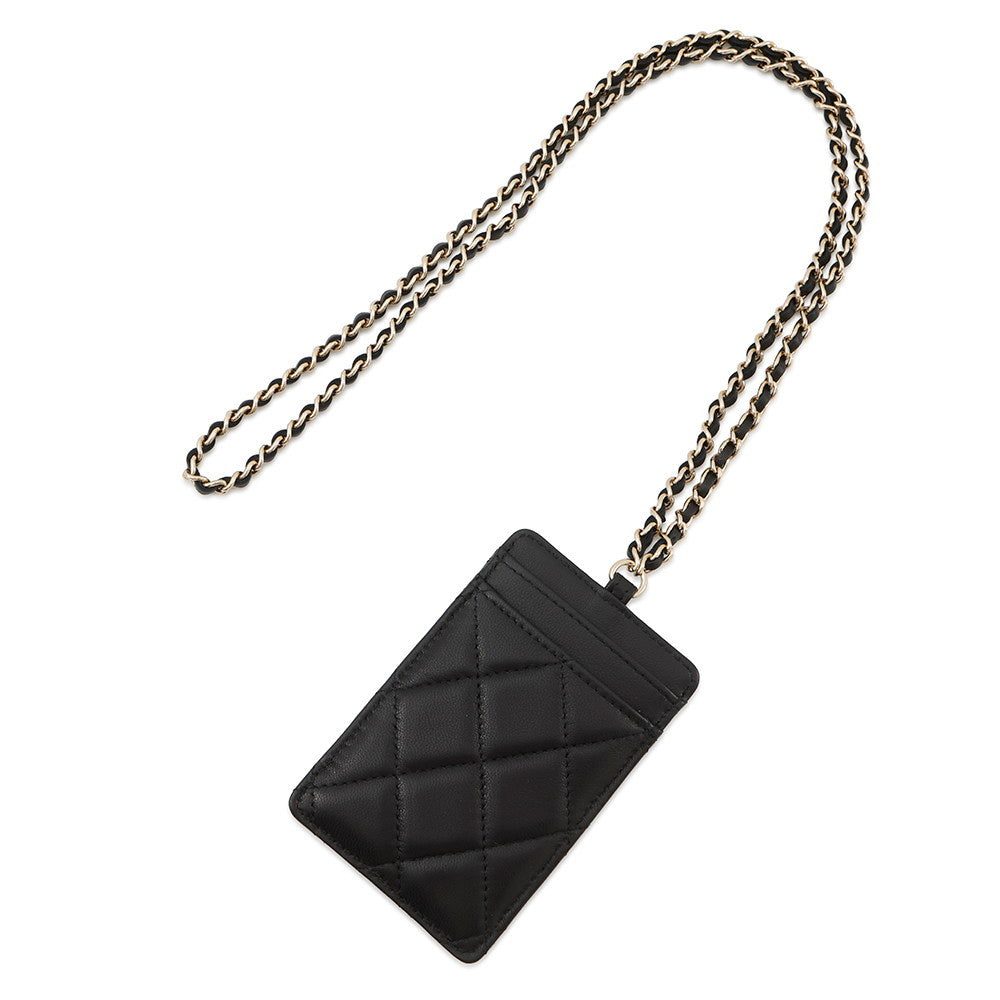CHANEL Matelasse CC Logo ChainStrap Card Case BlackA01745 Lambskin