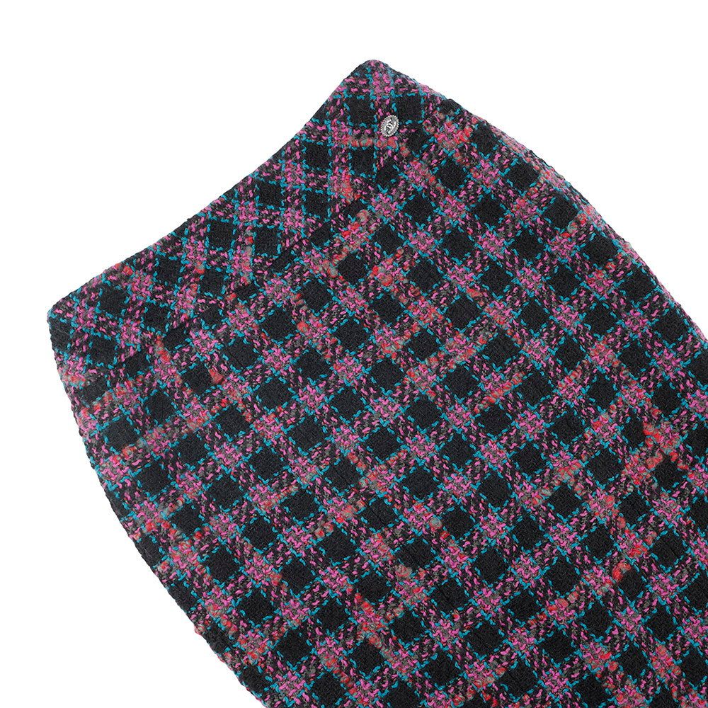 CHANEL CC LogoButton TweedSkirt Size 36 Black/Pink/MulticolorP73672 Wool 79% Nylon17% Polyester4% Rhinestone