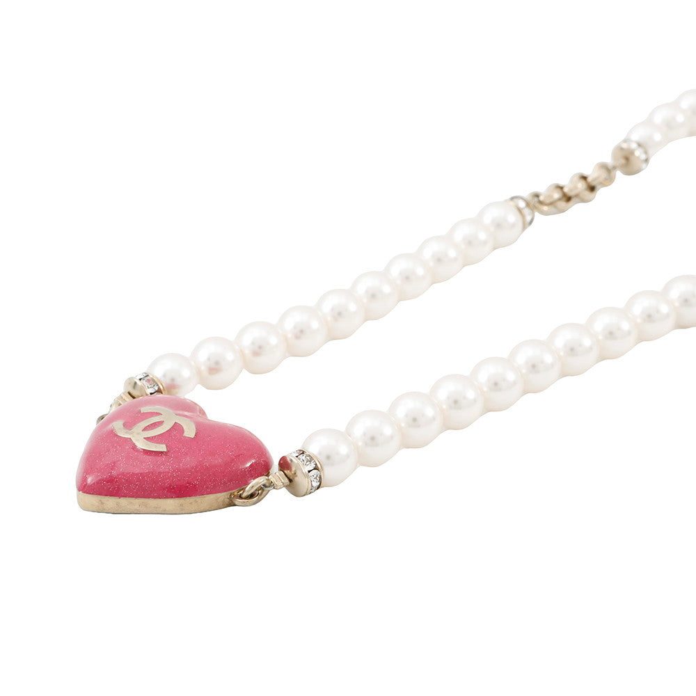 CHANEL Heart Rhinestone Pearl Long Necklace Pink Gold Plated Rhinestone Faux PearlCHANEL Heart Rhinestone Pearl Long Necklace Pink Gold Plated Rhinestone Faux Pearl
