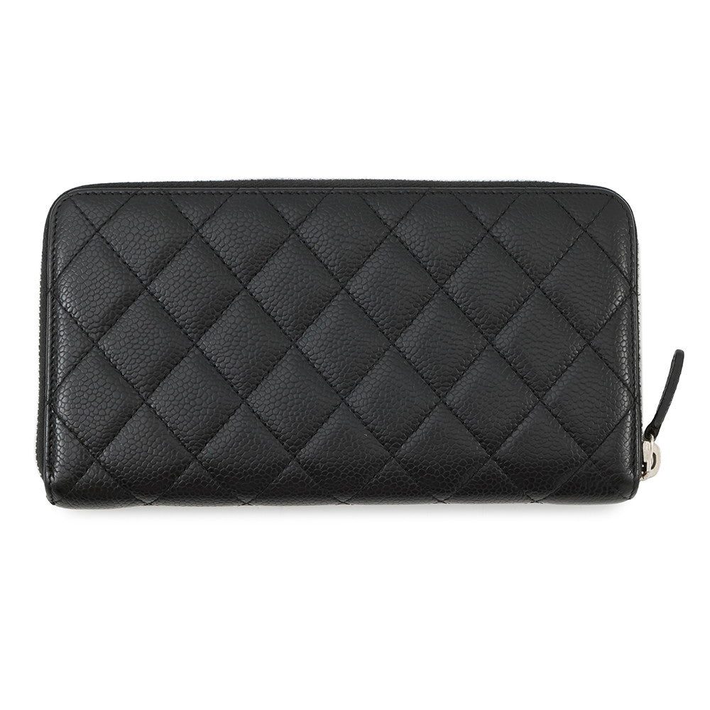 CHANEL Matelasse Zip Around Long Wallet BlackA50097 Caviar LeatherCHANEL Matelasse Zip Around Long Wallet BlackA50097 Caviar Leather