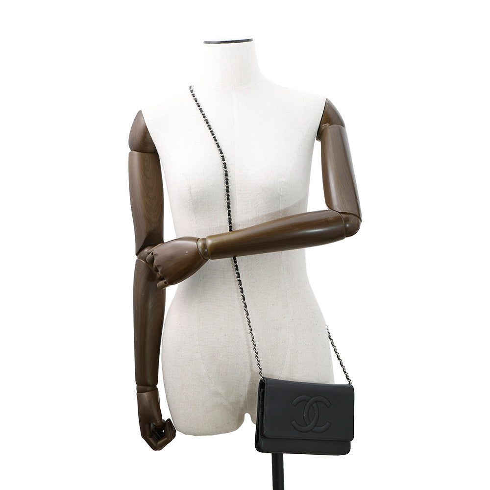 CHANEL CC Logo Chain Wallet BlackA48654 Caviar Leather