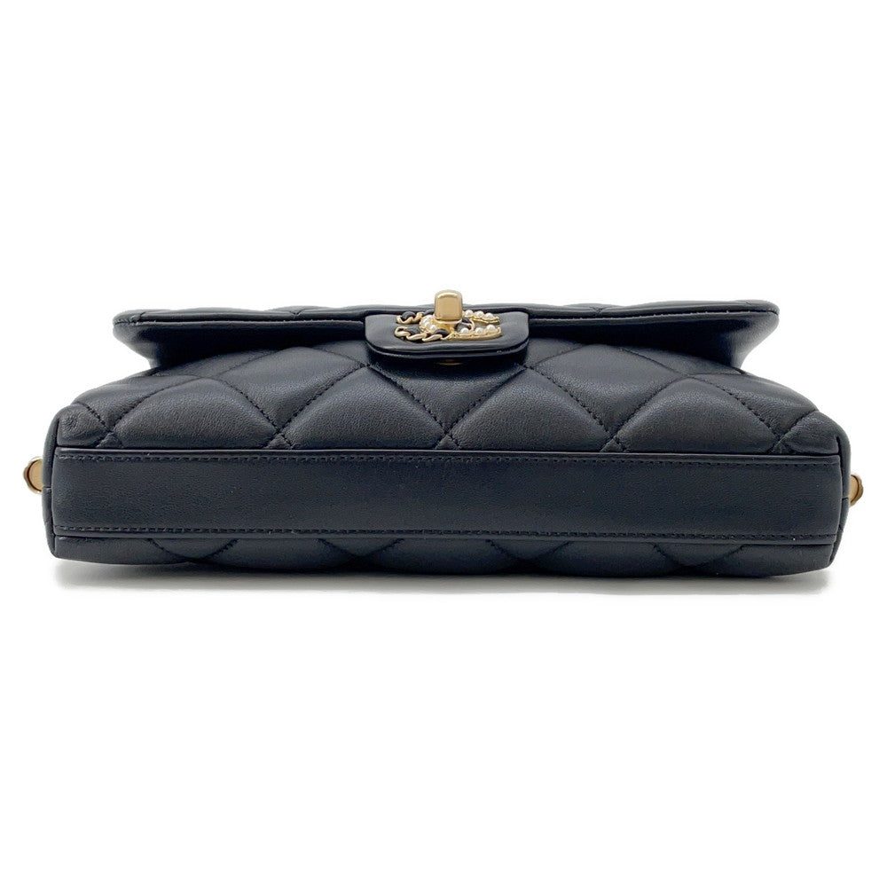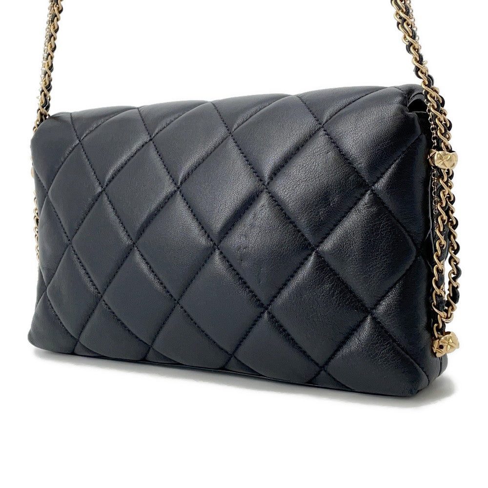 CHANEL Matelasse ChainShoulder Bag Black Lambskin Faux Pearl