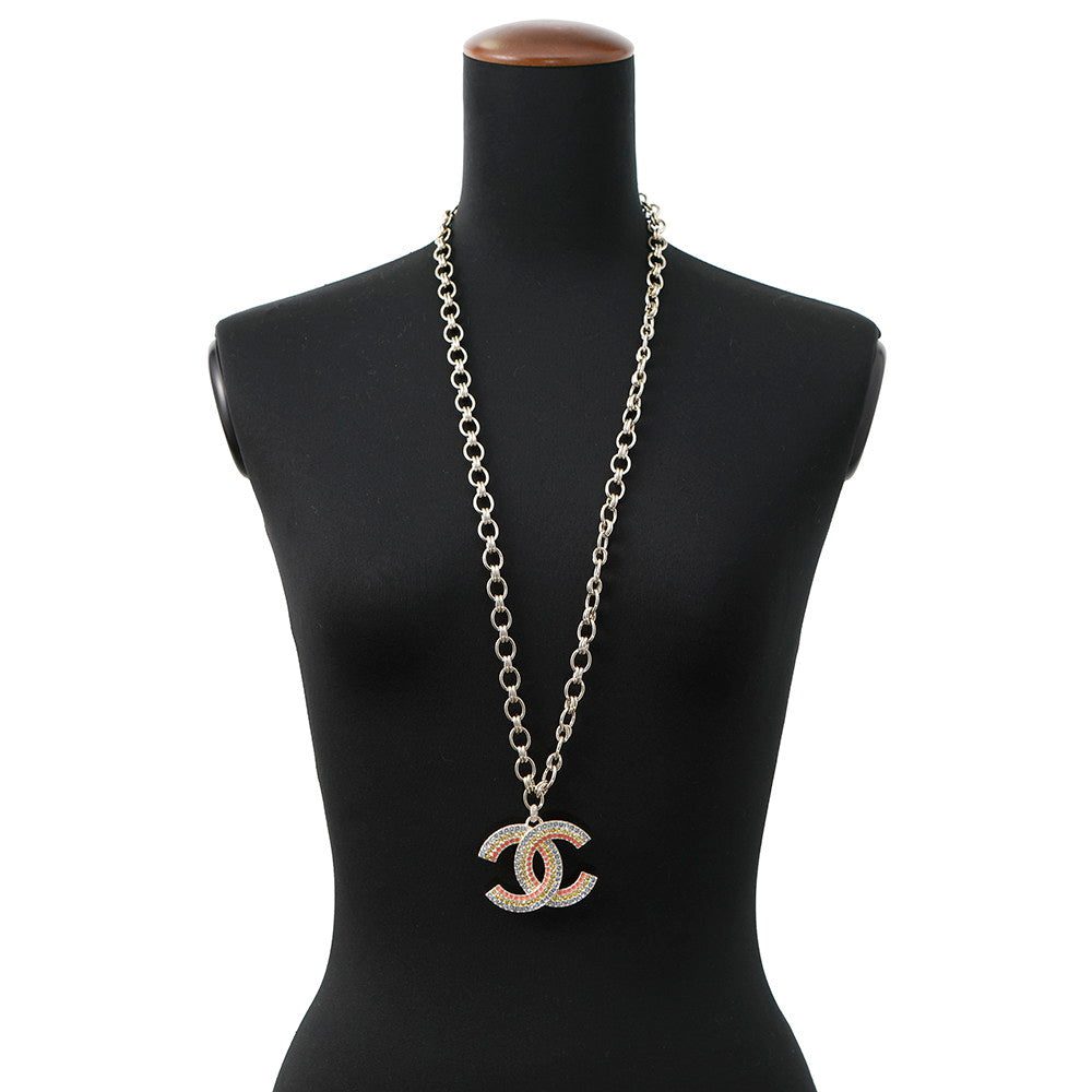 CHANEL CC Logo Rhinestone Necklace Multicolor Metal Rhinestone