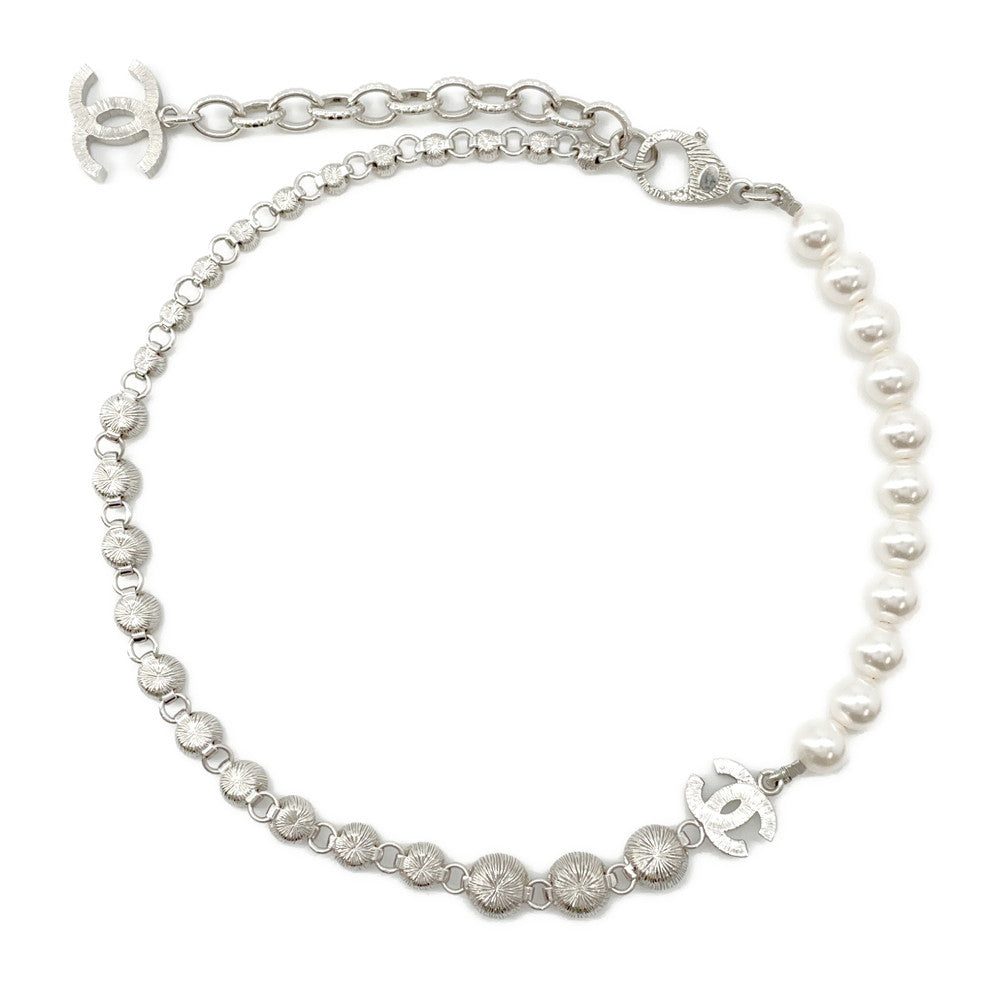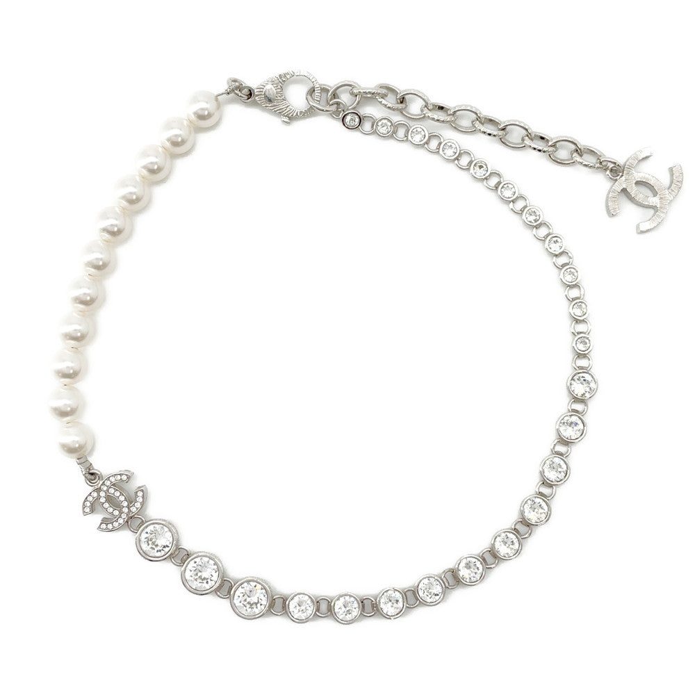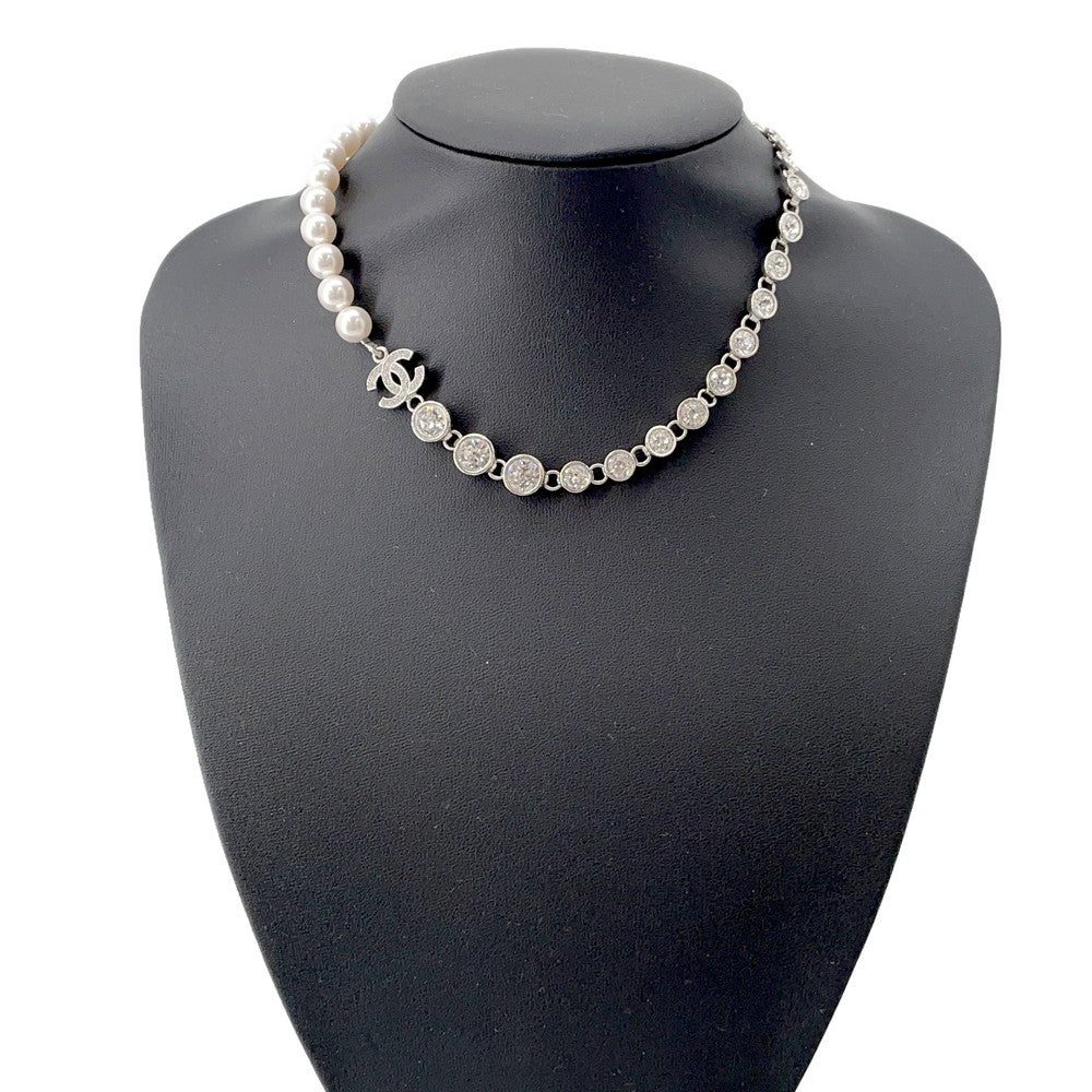 CHANEL CC Logo PearlNecklaceABA625 Metal Strass Costume Pearl