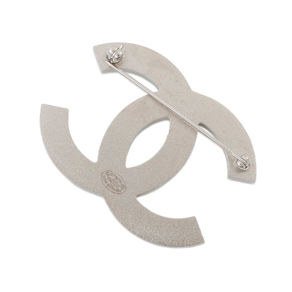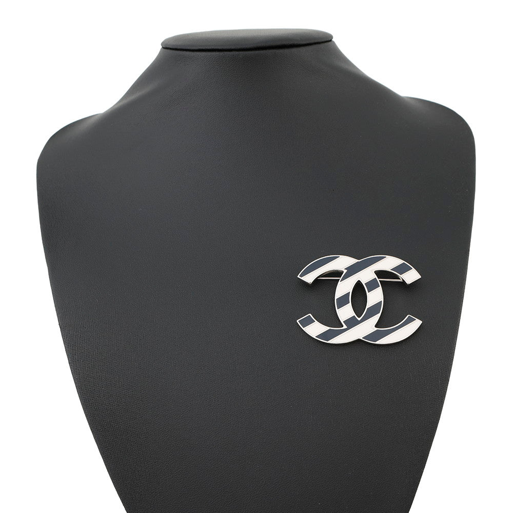CHANEL CC Logo Border Brooch White/Blue Metal
