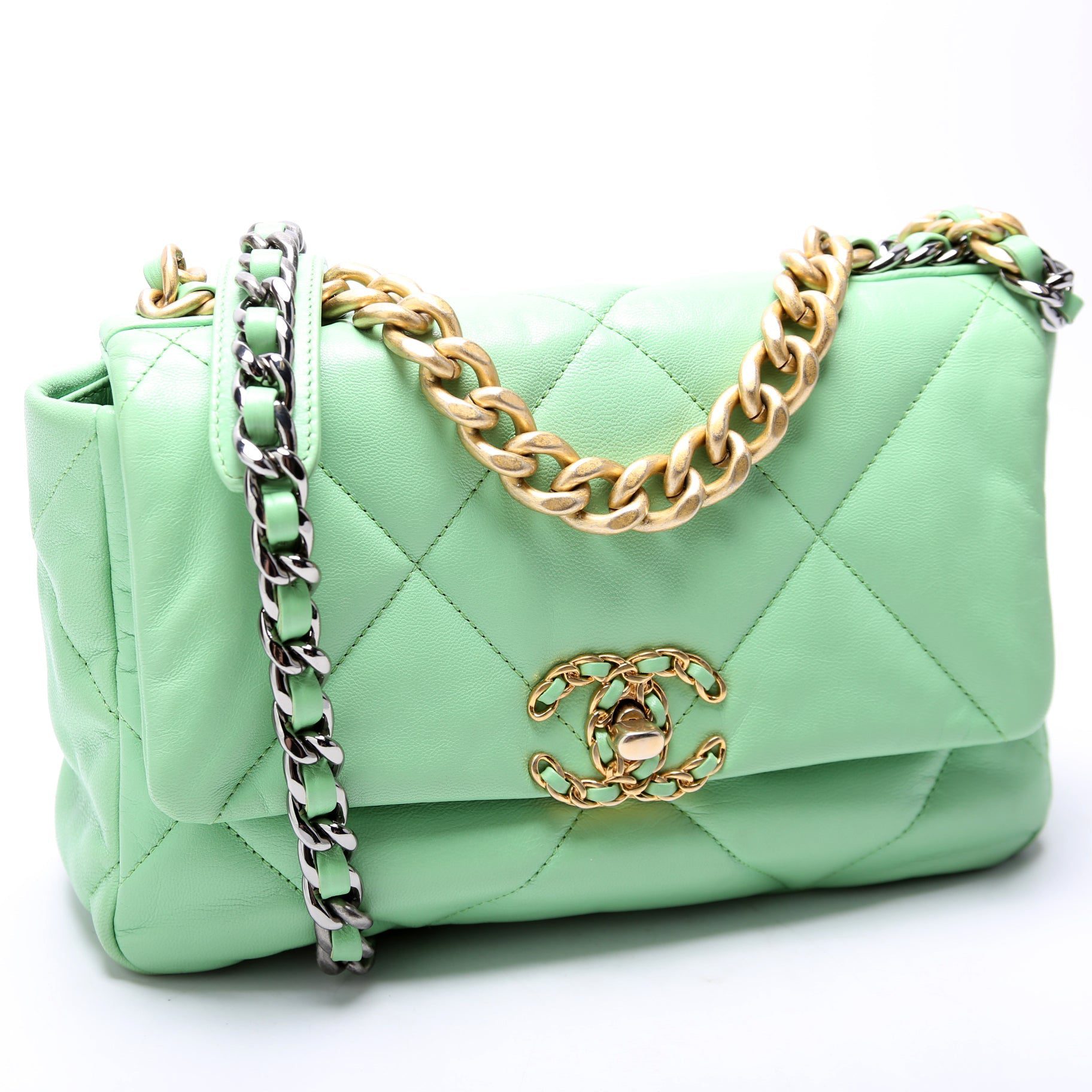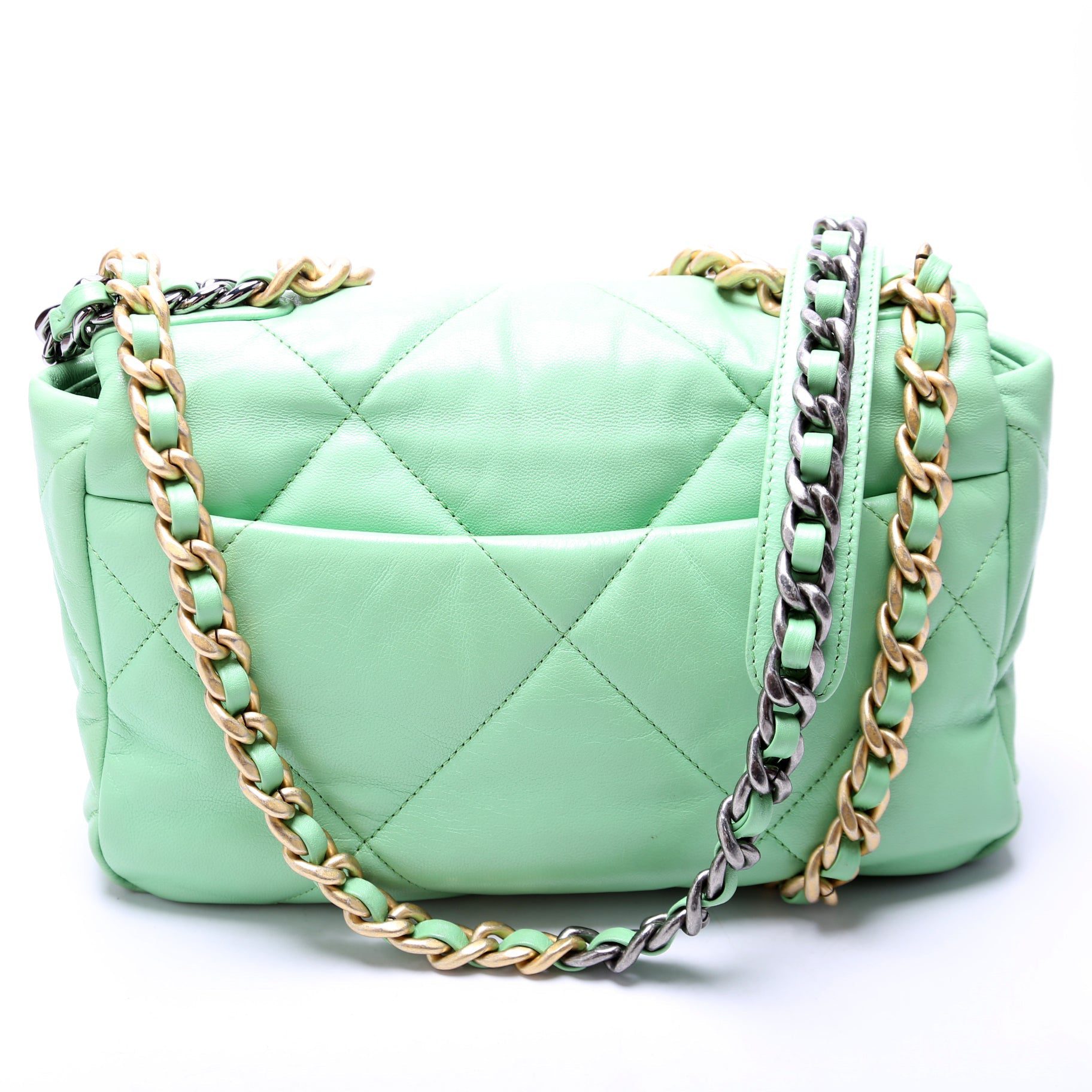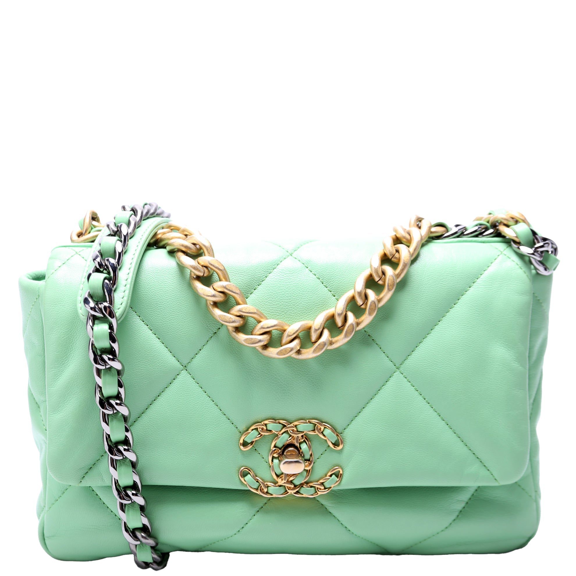 Chanel 19 Medium Flap Quilted Goatskin 30M Green BagChanel 19 Medium Flap Quilted Goatskin 30M Green Bag