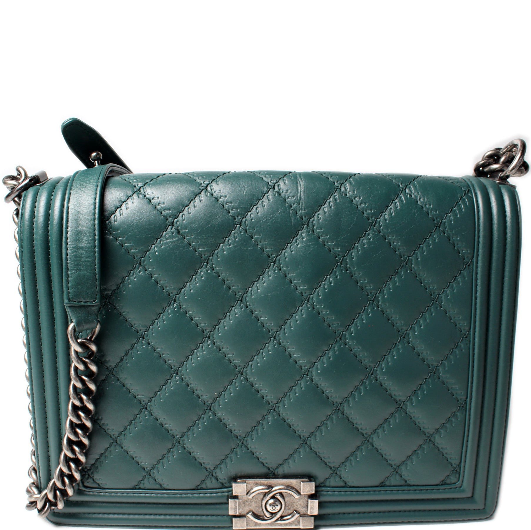 Chanel Boy Flap Large. The exterior is in the classic Chanel calfskin leather.Â