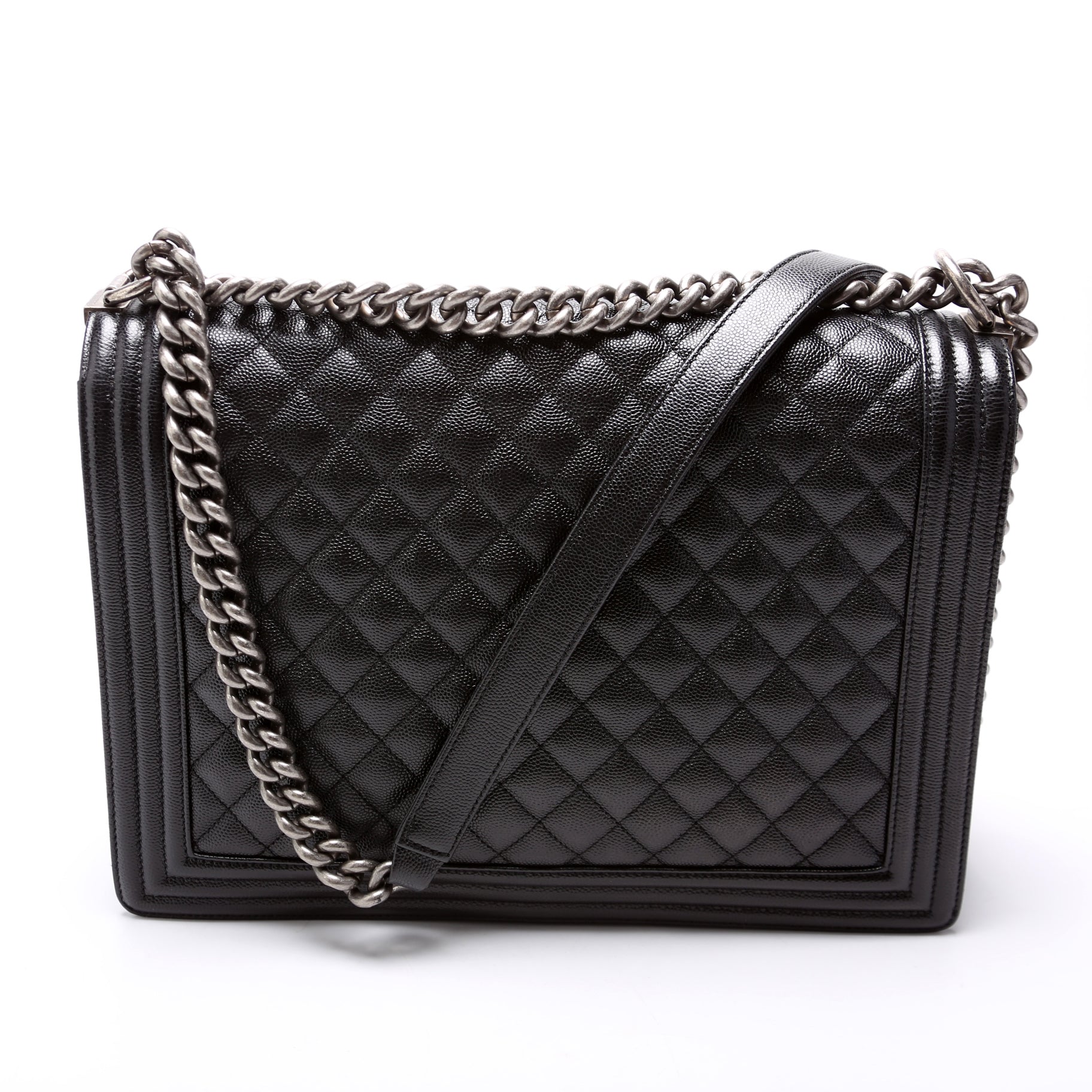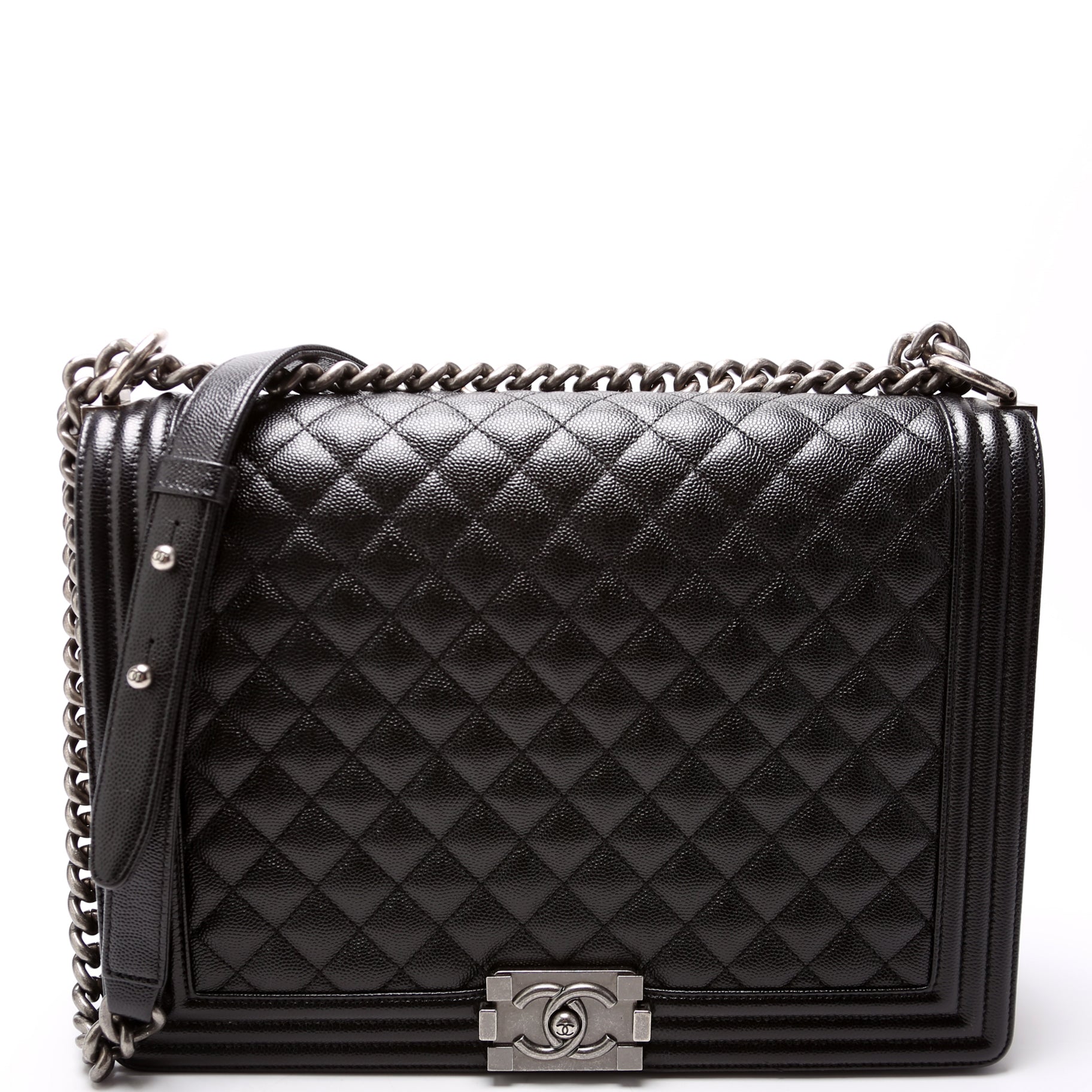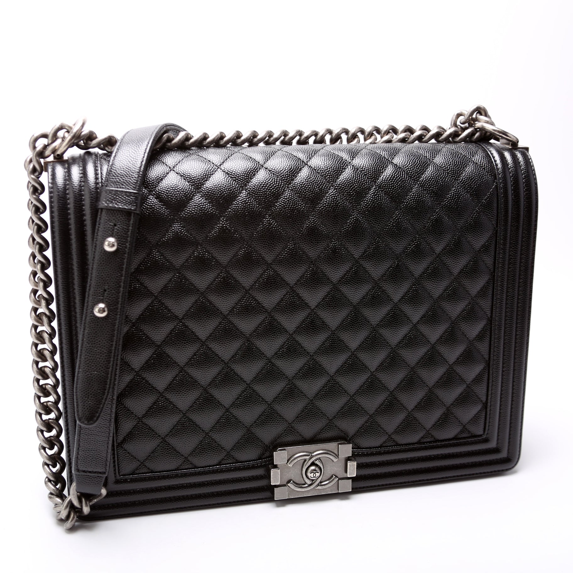 Chanel Boy Flap Large 25-28M. The exterior is in classic Chanel Caviar leather.Â
