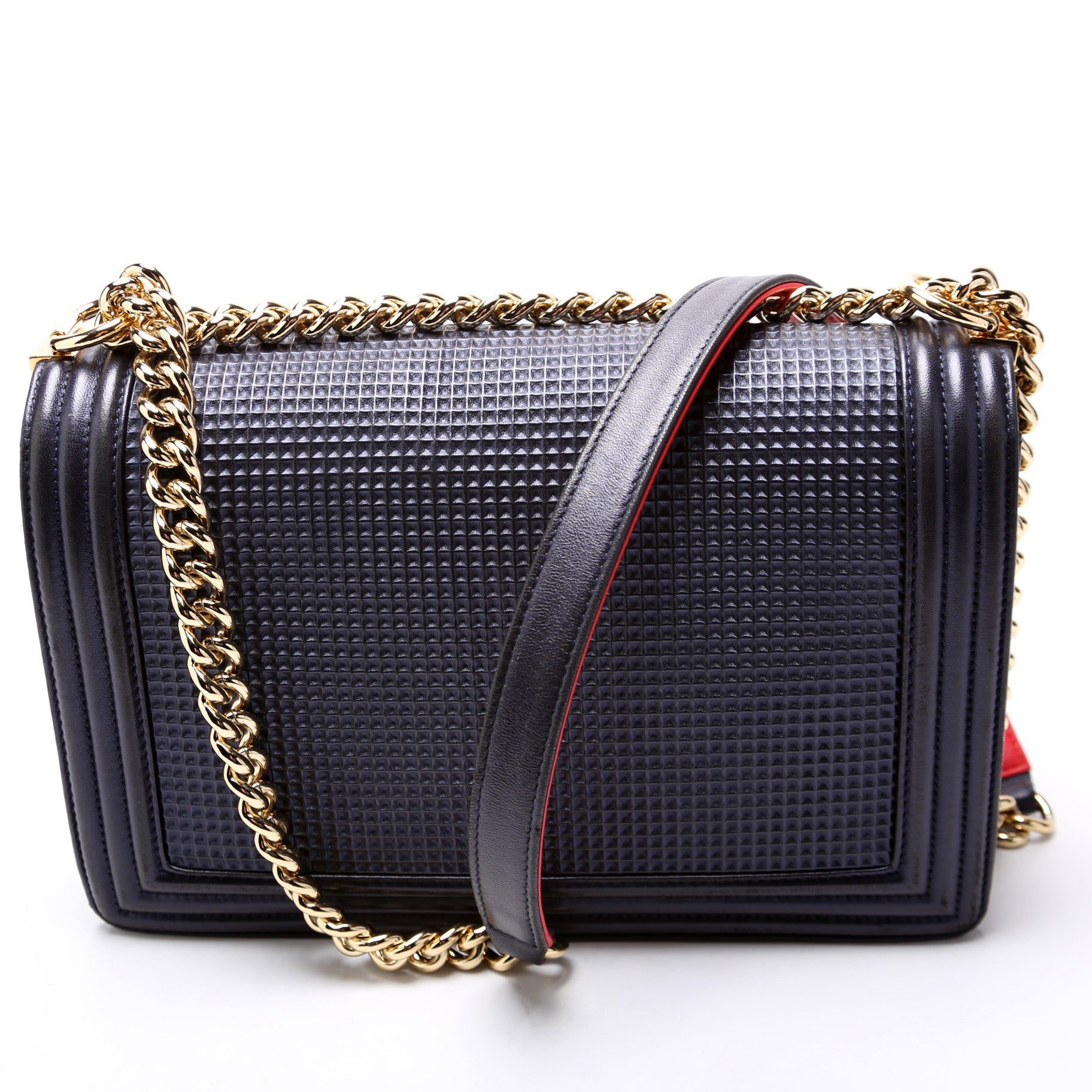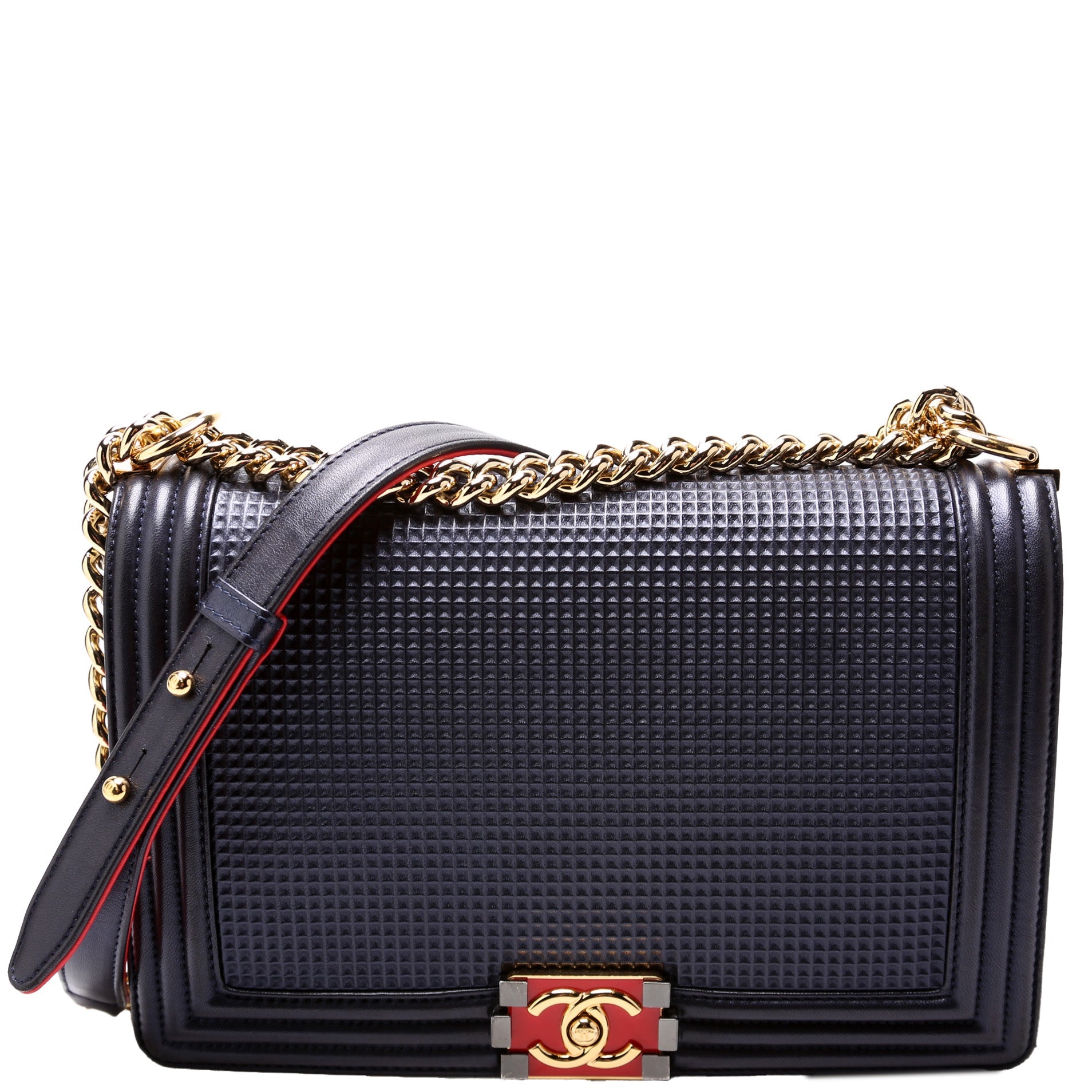 Chanel Boy Flap Medium New Cube Embossed. The exterior is in the classic Chanel Lambskin leather.Â