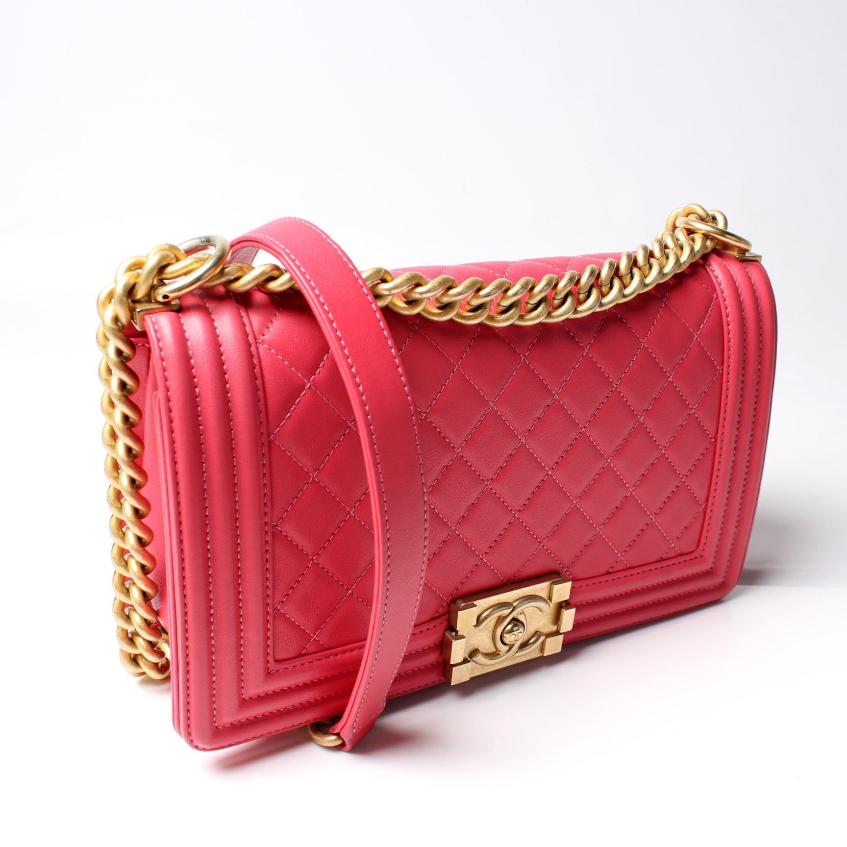 Chanel Medium Boy Flap. The exterior is in the classic Chanel Lambskin leather.Â