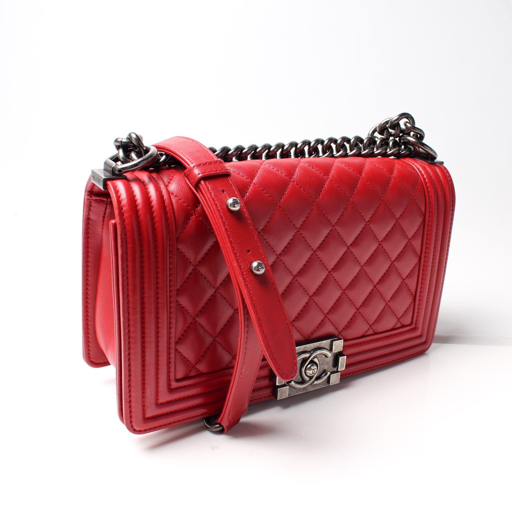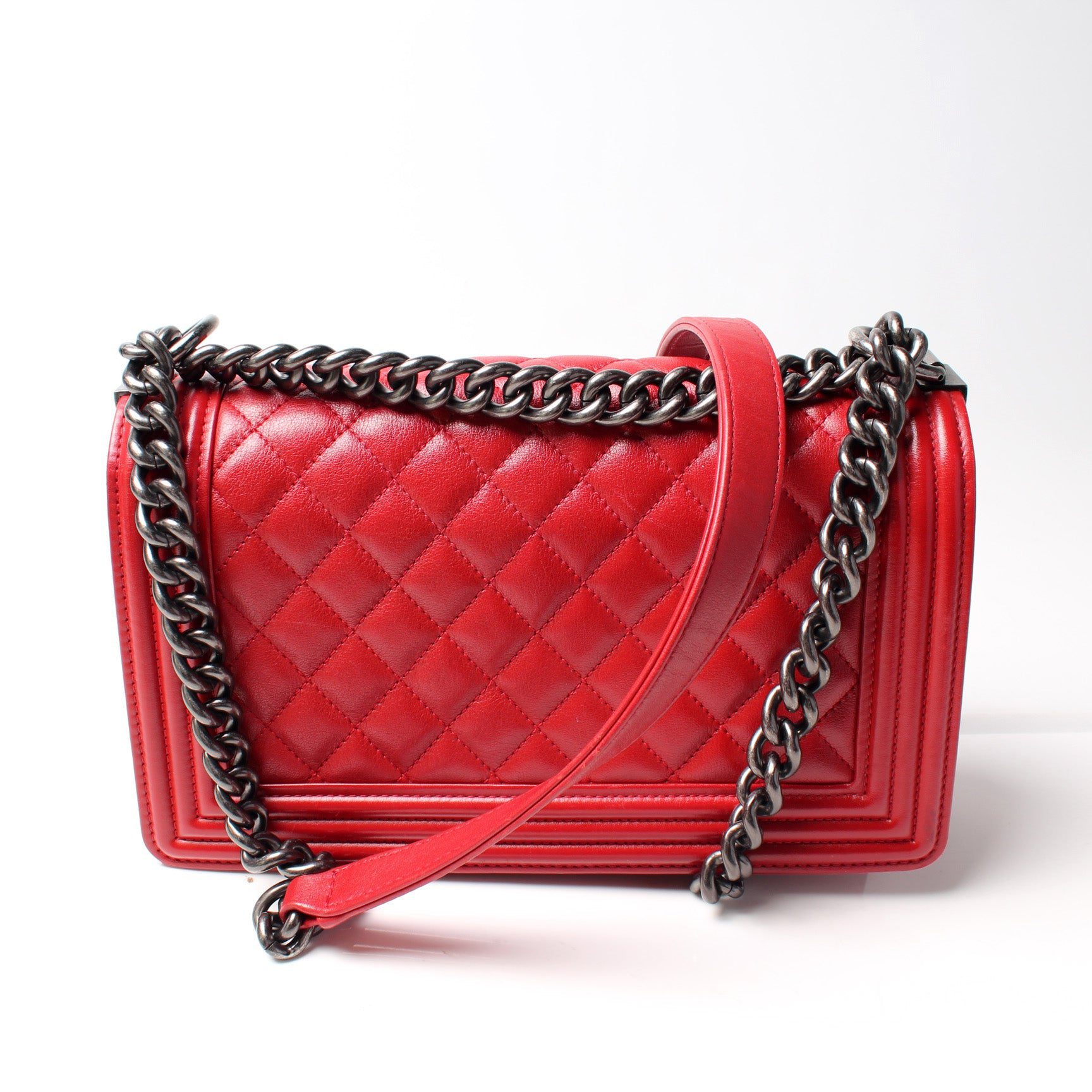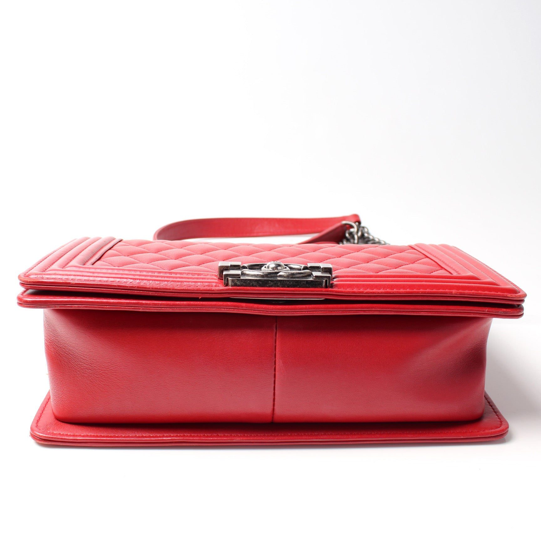 Chanel Medium New Boy Flap. The exterior is in the classic Chanel lambskin leather.Â