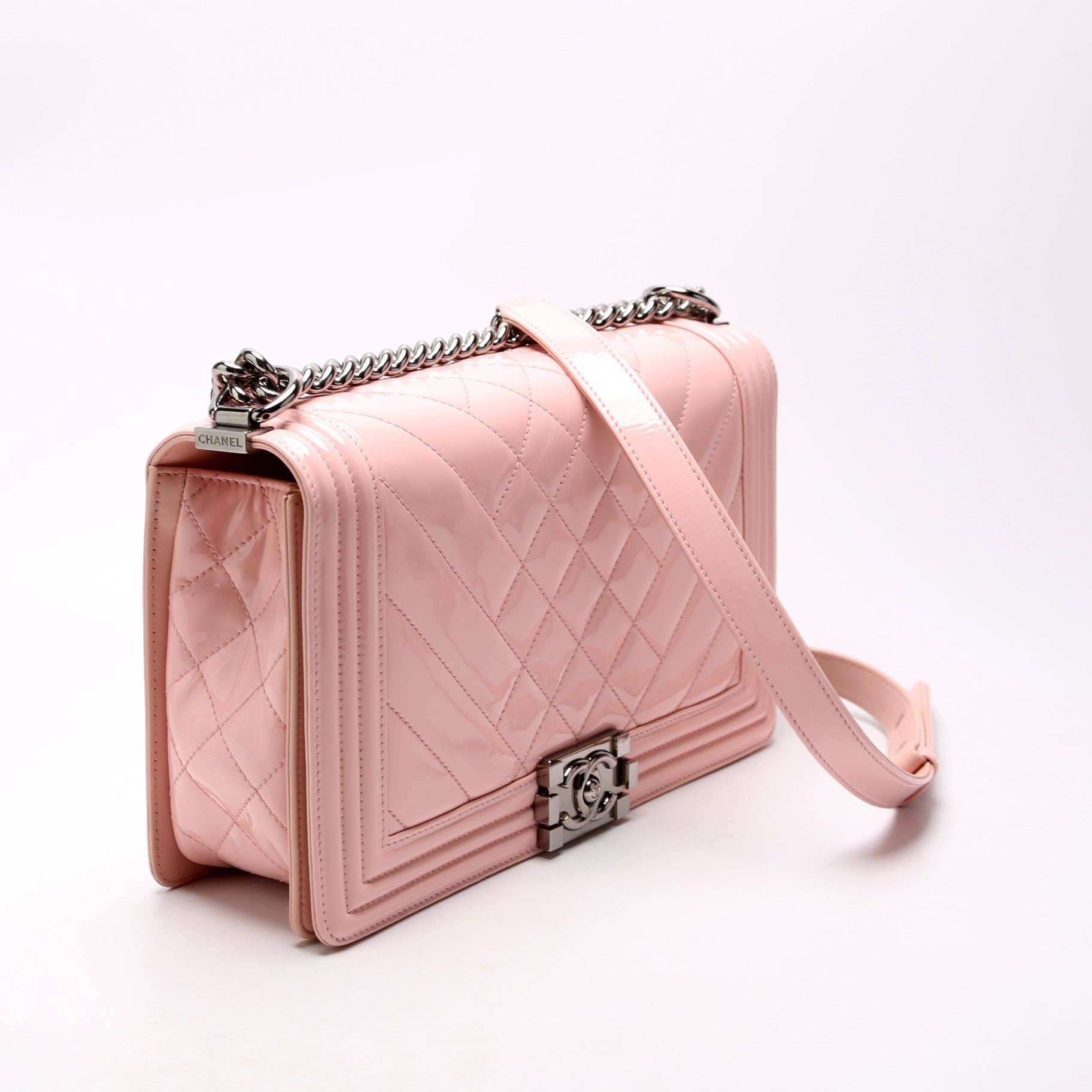Chanel Boy Flap Medium Old. The material is classic Chanel Patent leather.Â