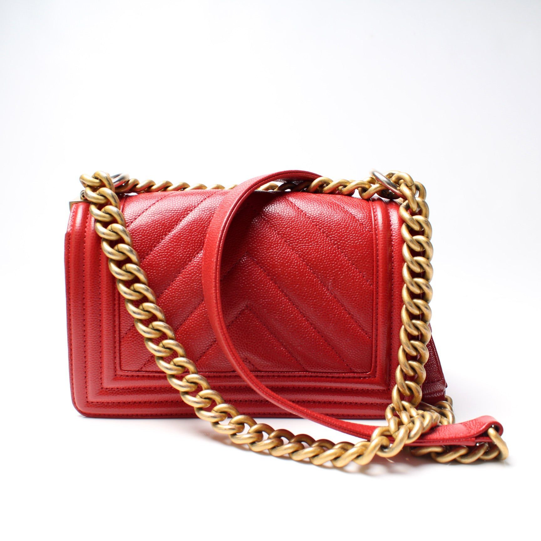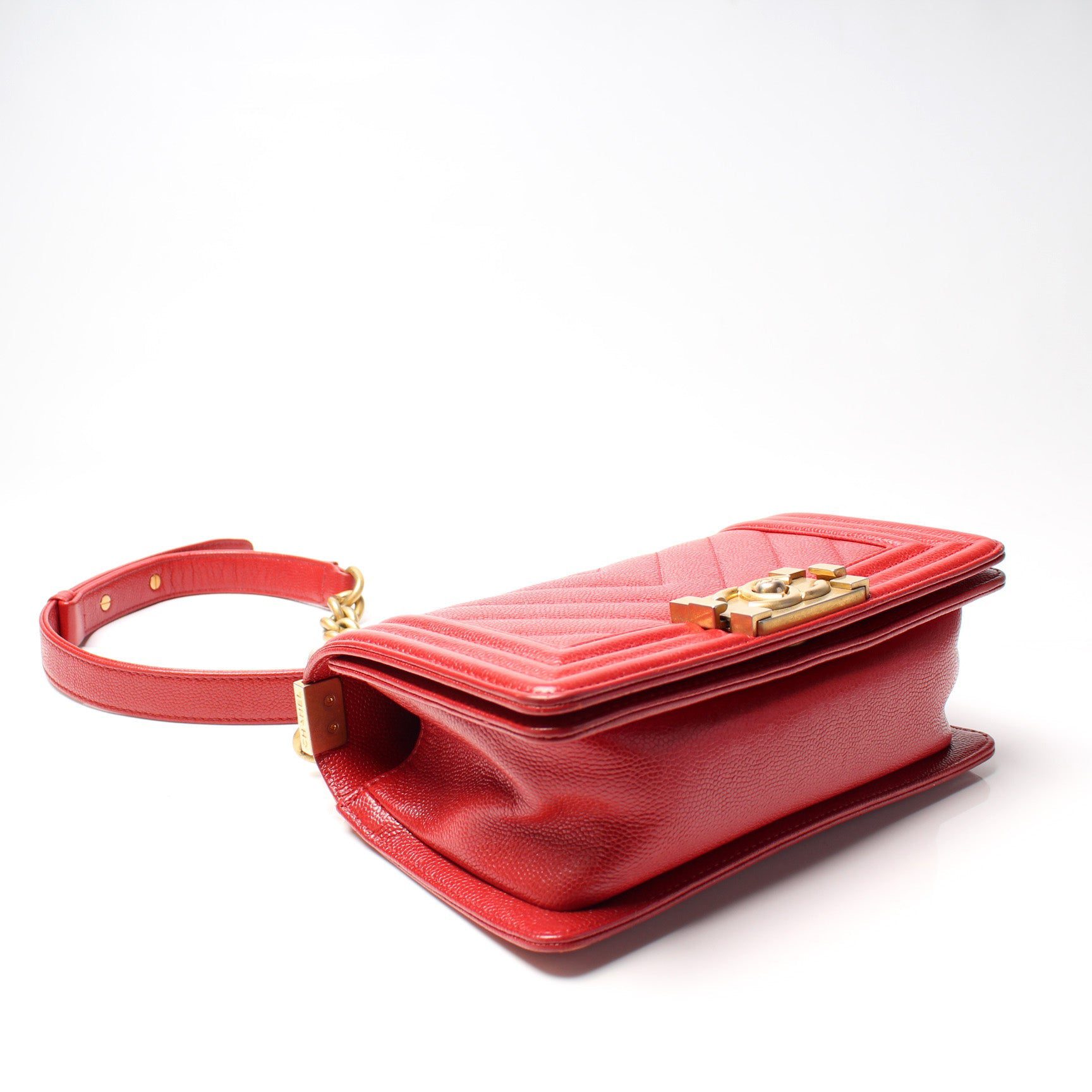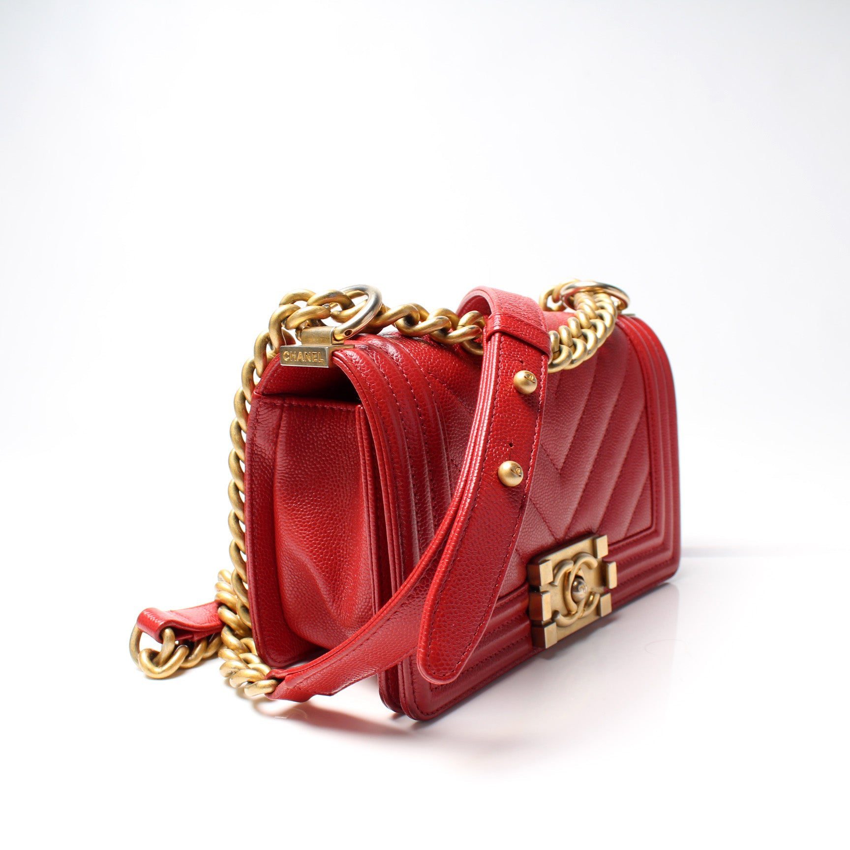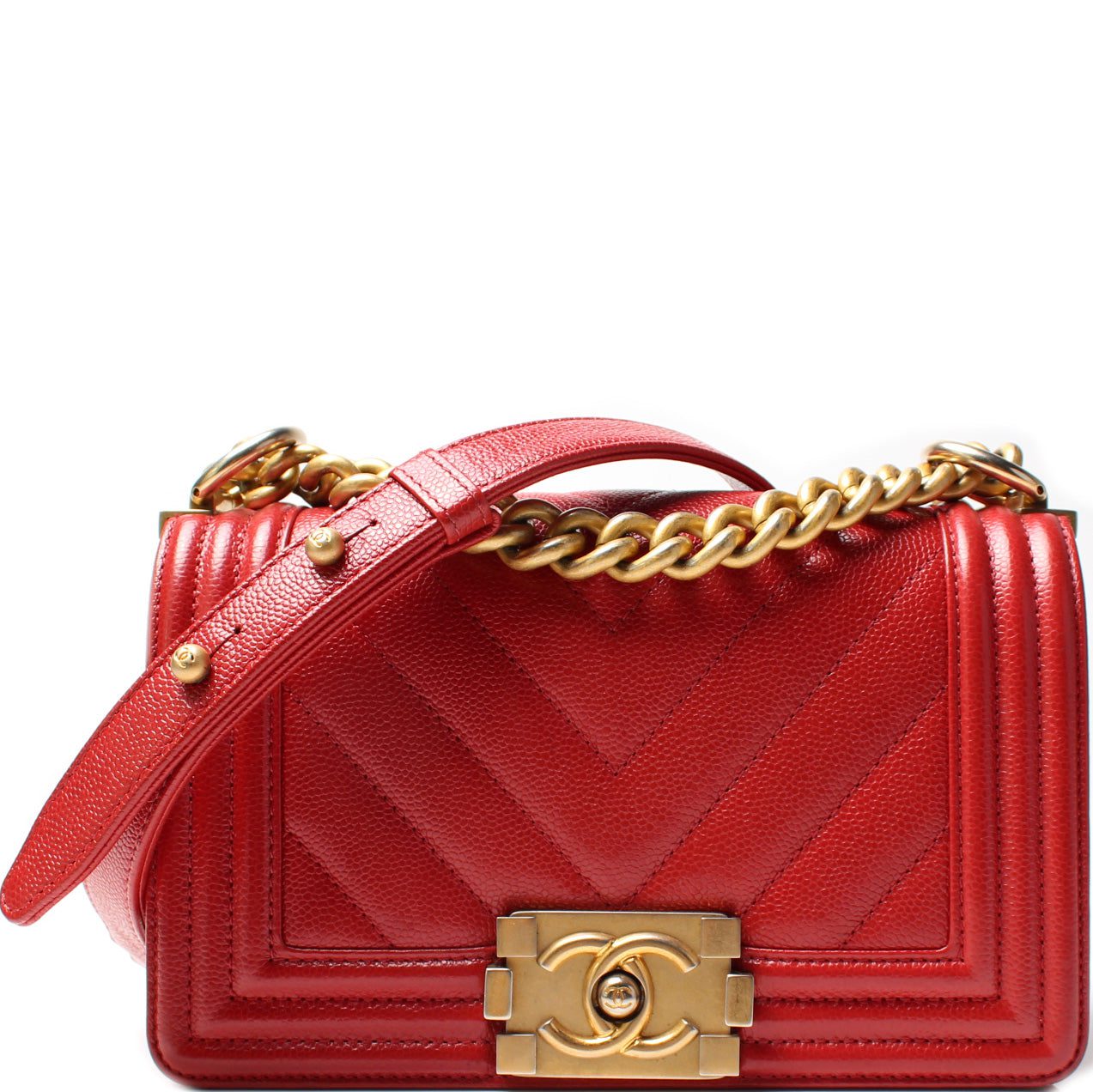 Chanel Boy Flap Small. The exterior is in the classic Chanel Caviar leather.Â