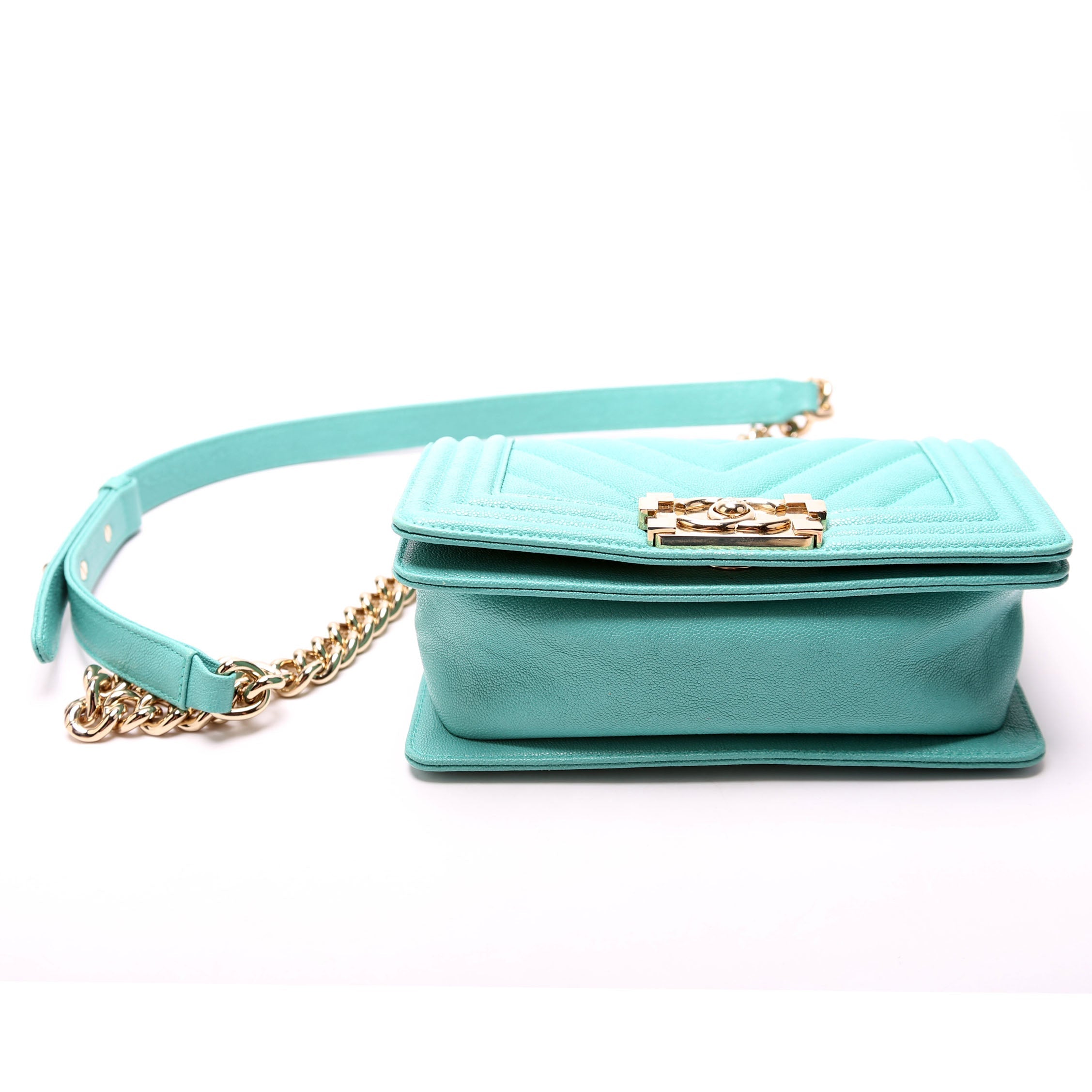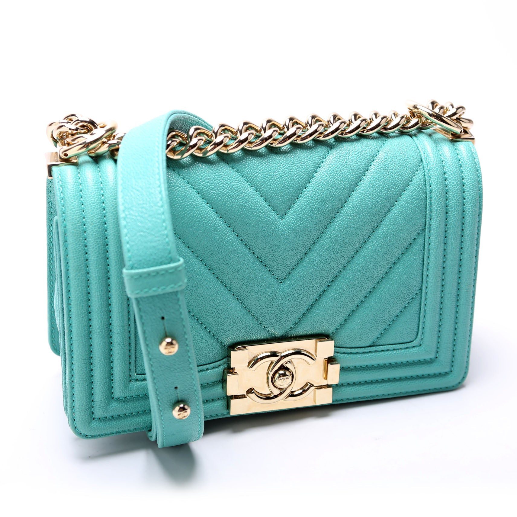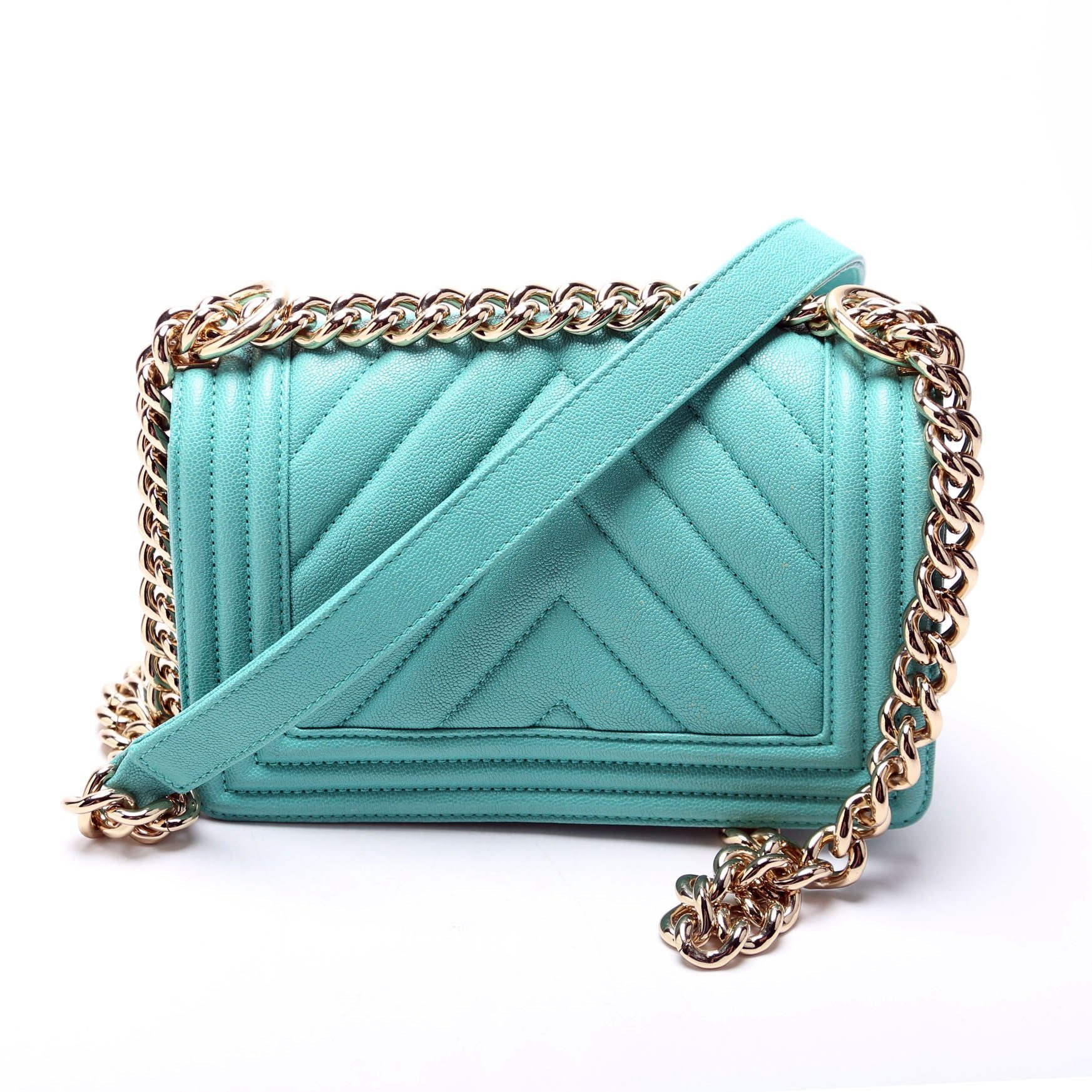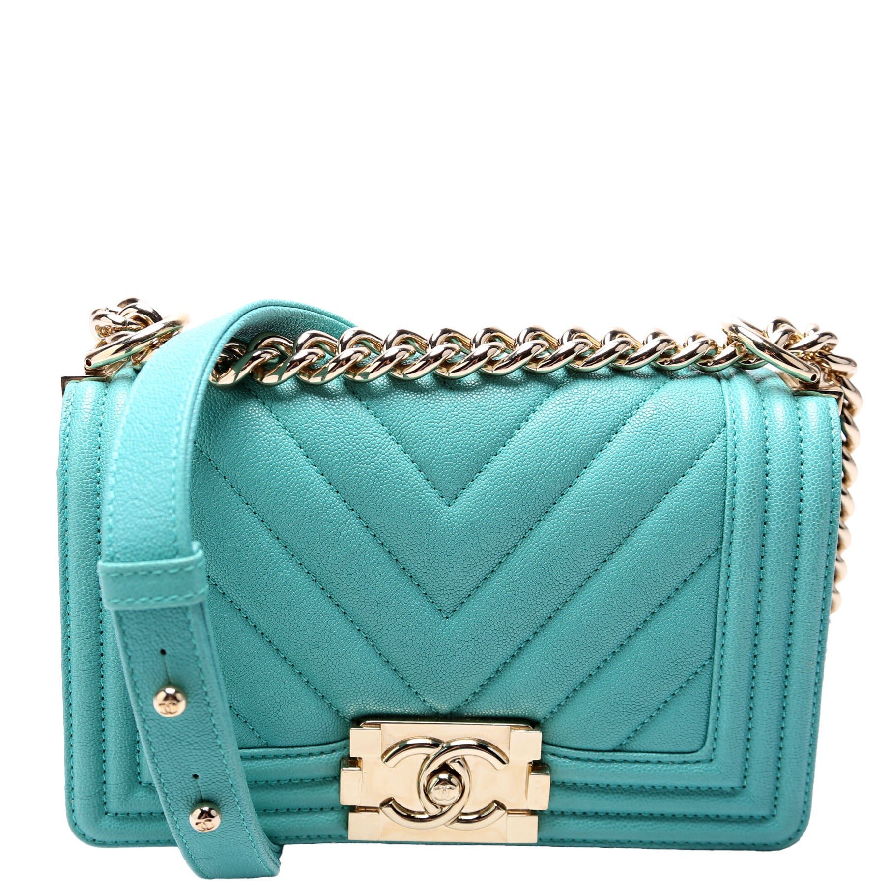 Chanel Boy Flap. The exterior is in the classic Chanel Caviar leather.Â