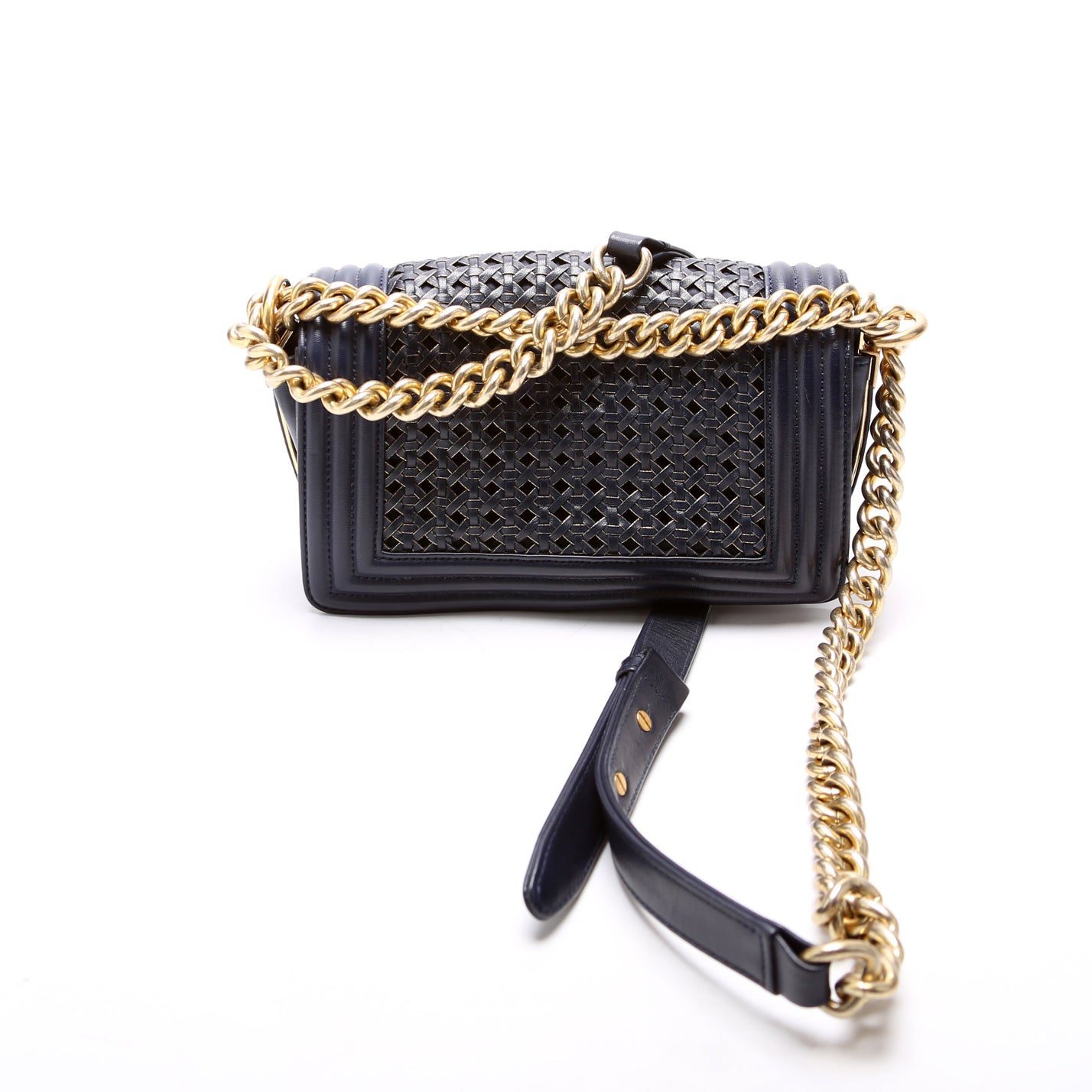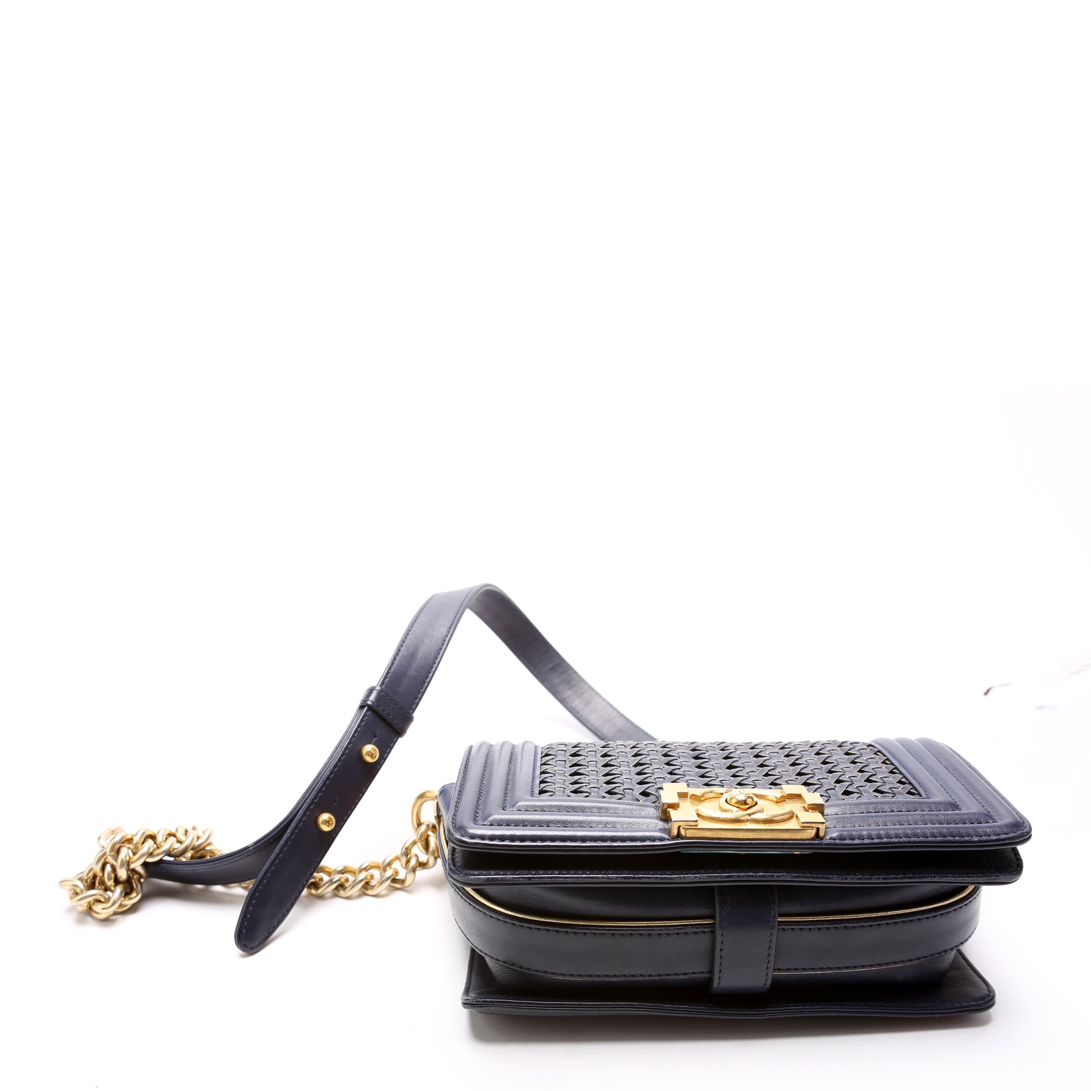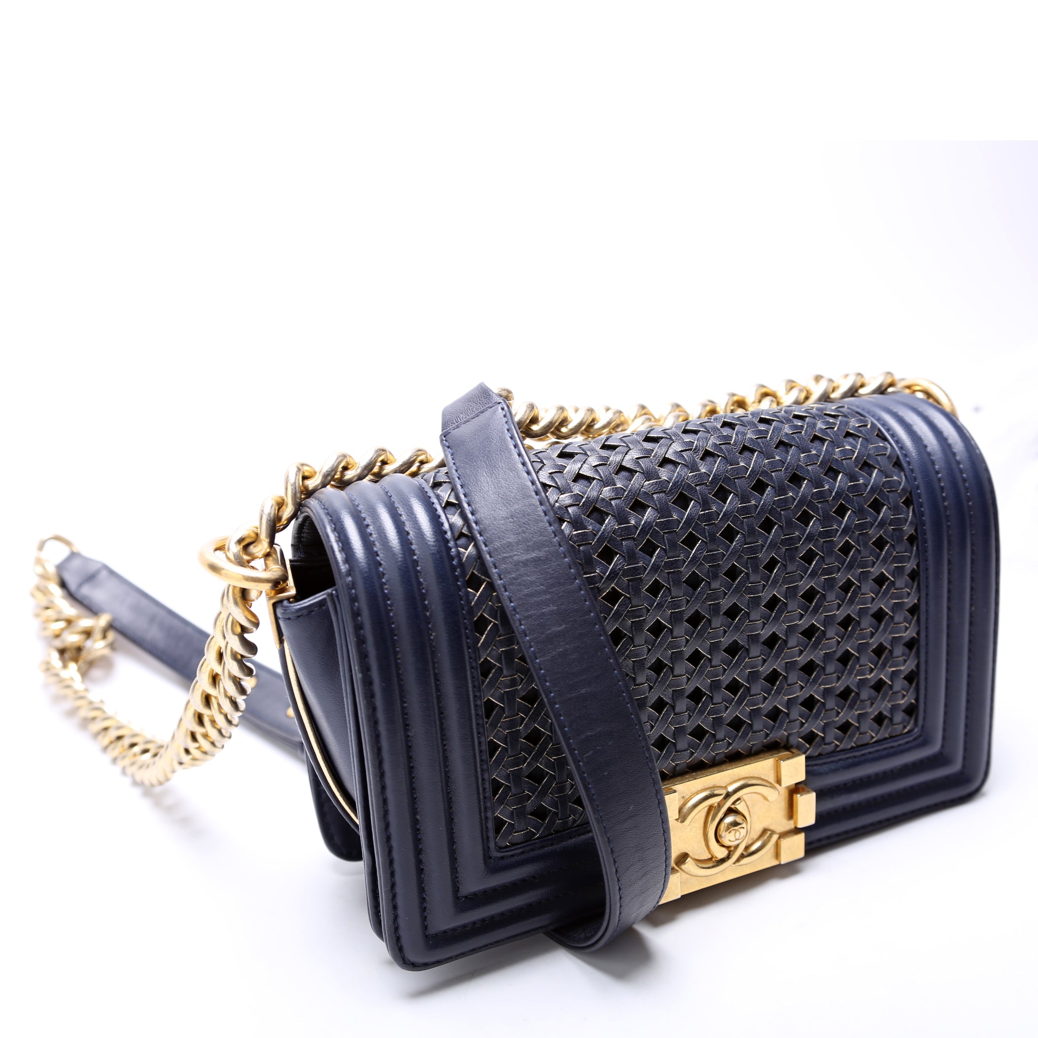 Chanel Boy Reverso Flap Small Braided Sheepskin 19M Navy BagChanel Boy Reverso Flap Small Braided Sheepskin 19M Navy Bag