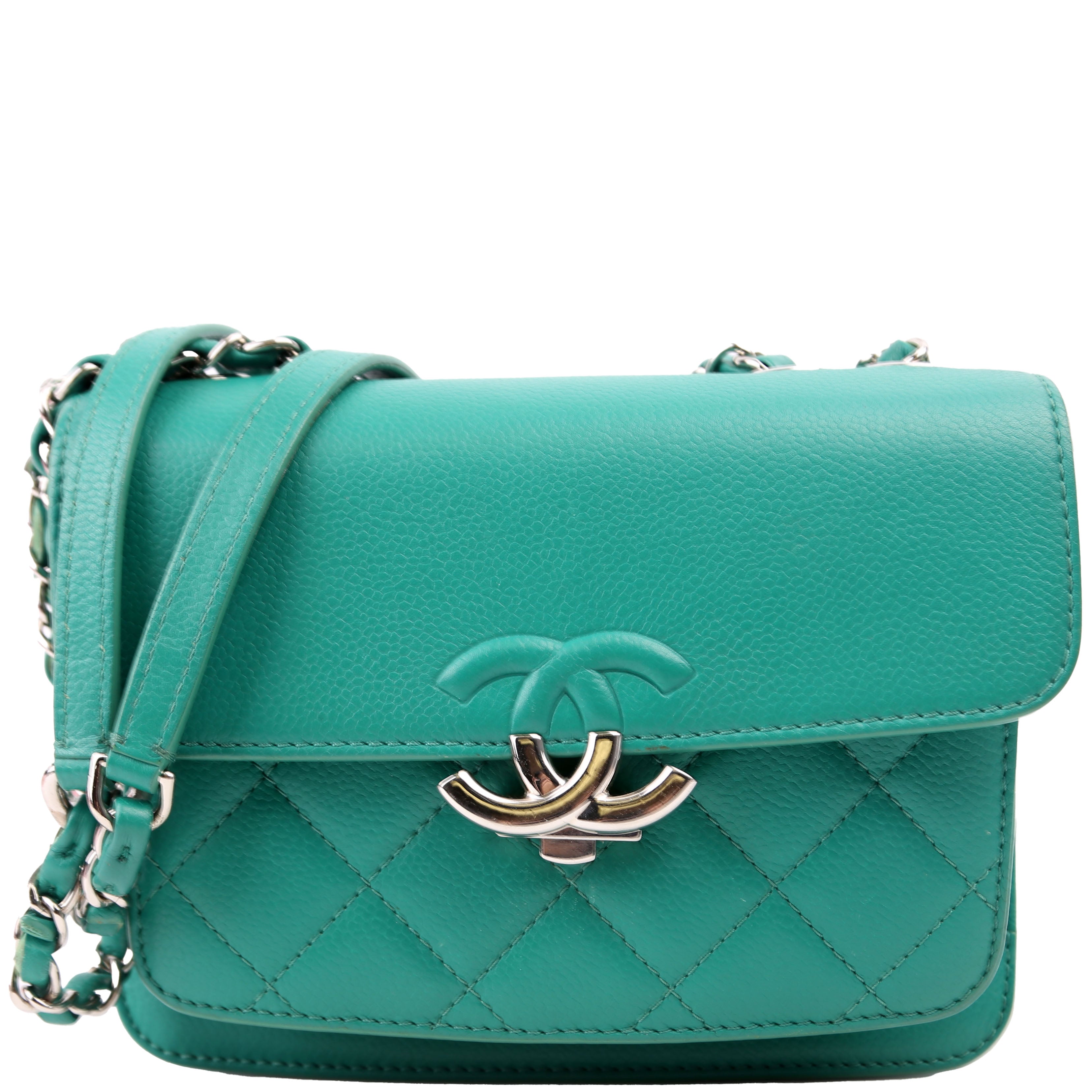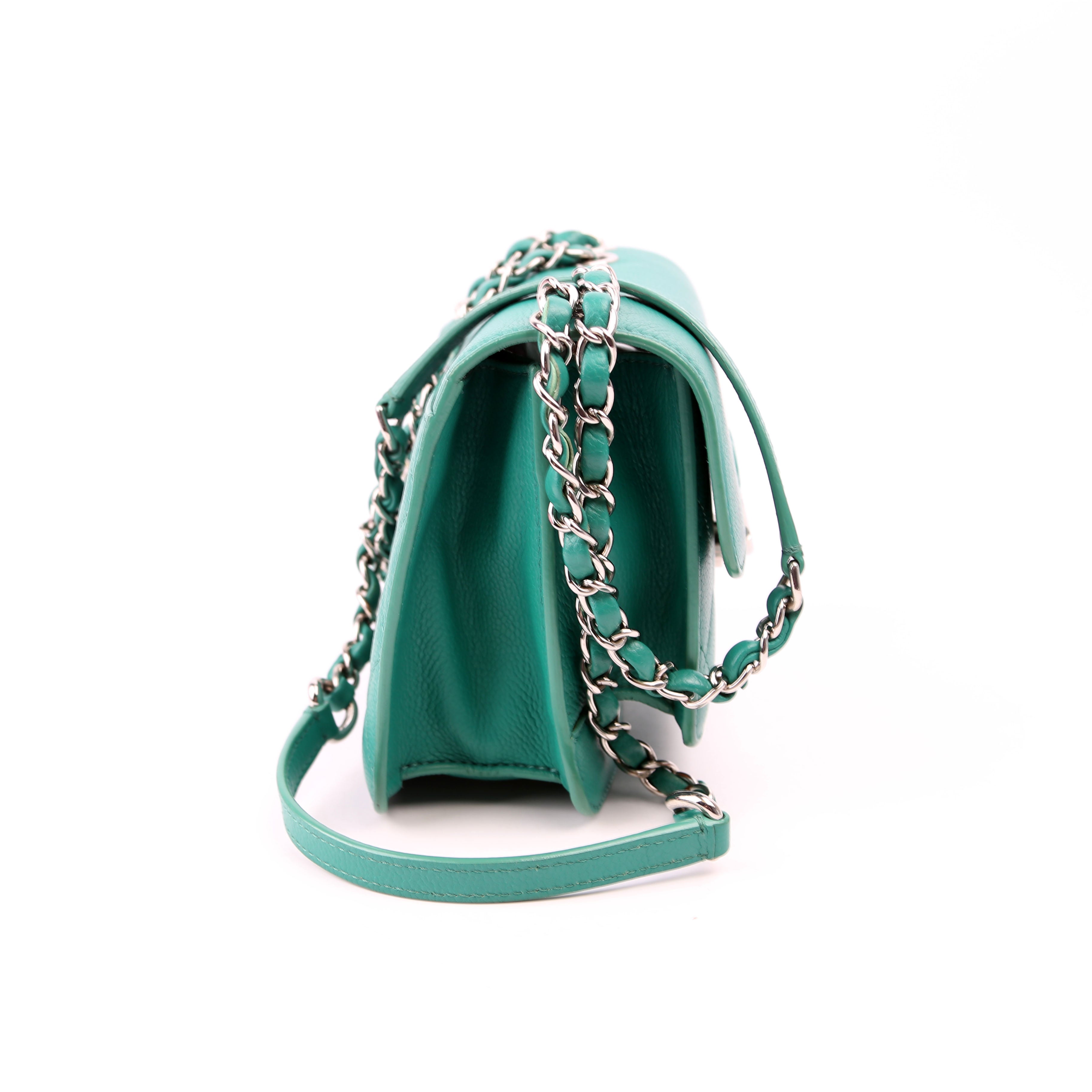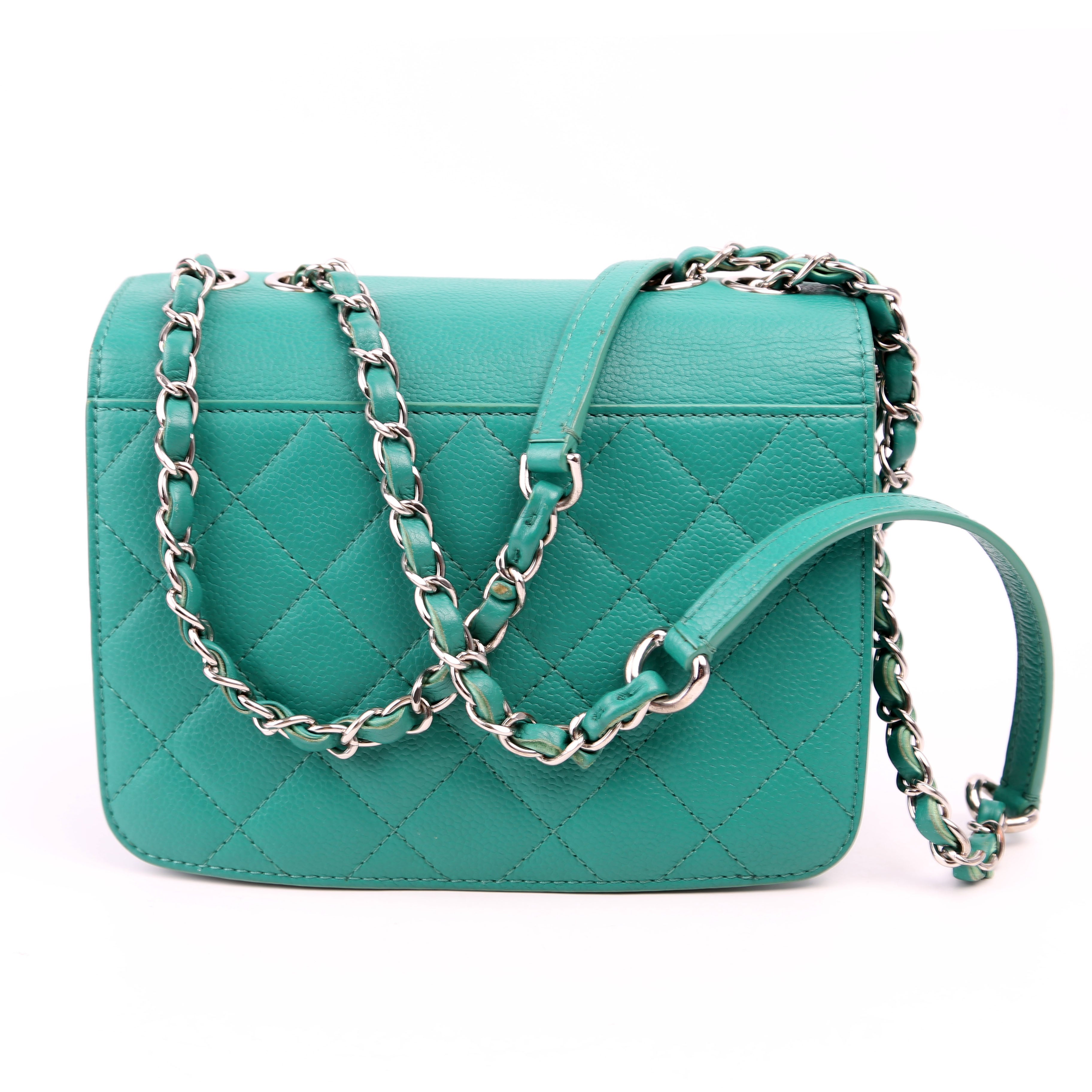 Chanel CC Box Flap Small Quilted Caviar 23M Green BagChanel CC Box Flap Small Quilted Caviar 23M Green Bag