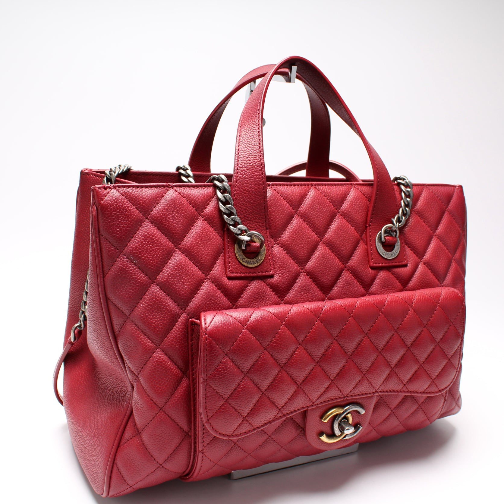 Chanel CC Front Pocket Shopping Tote Large 23M�. The exterior is in the classic Chanel Caviar leather.Â
