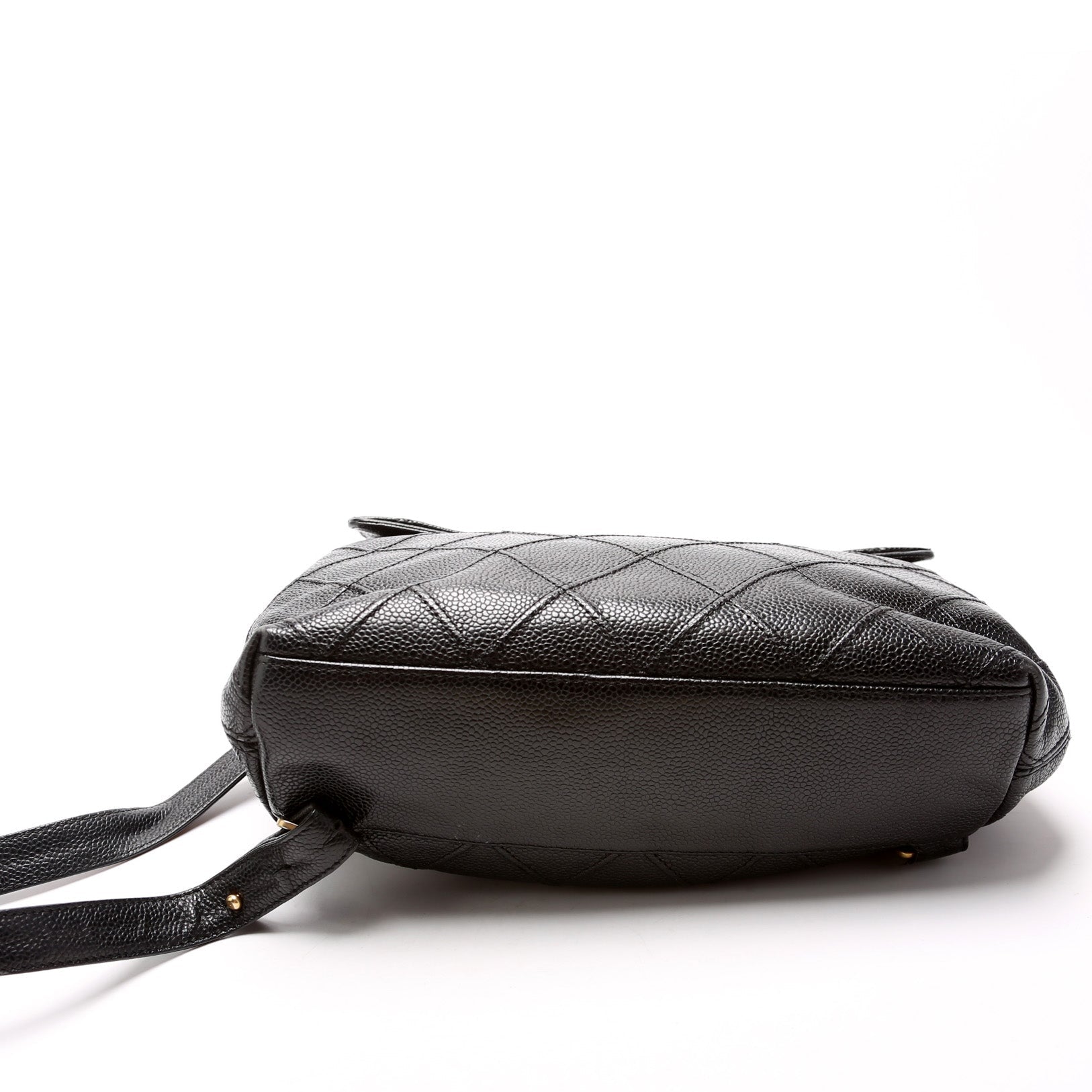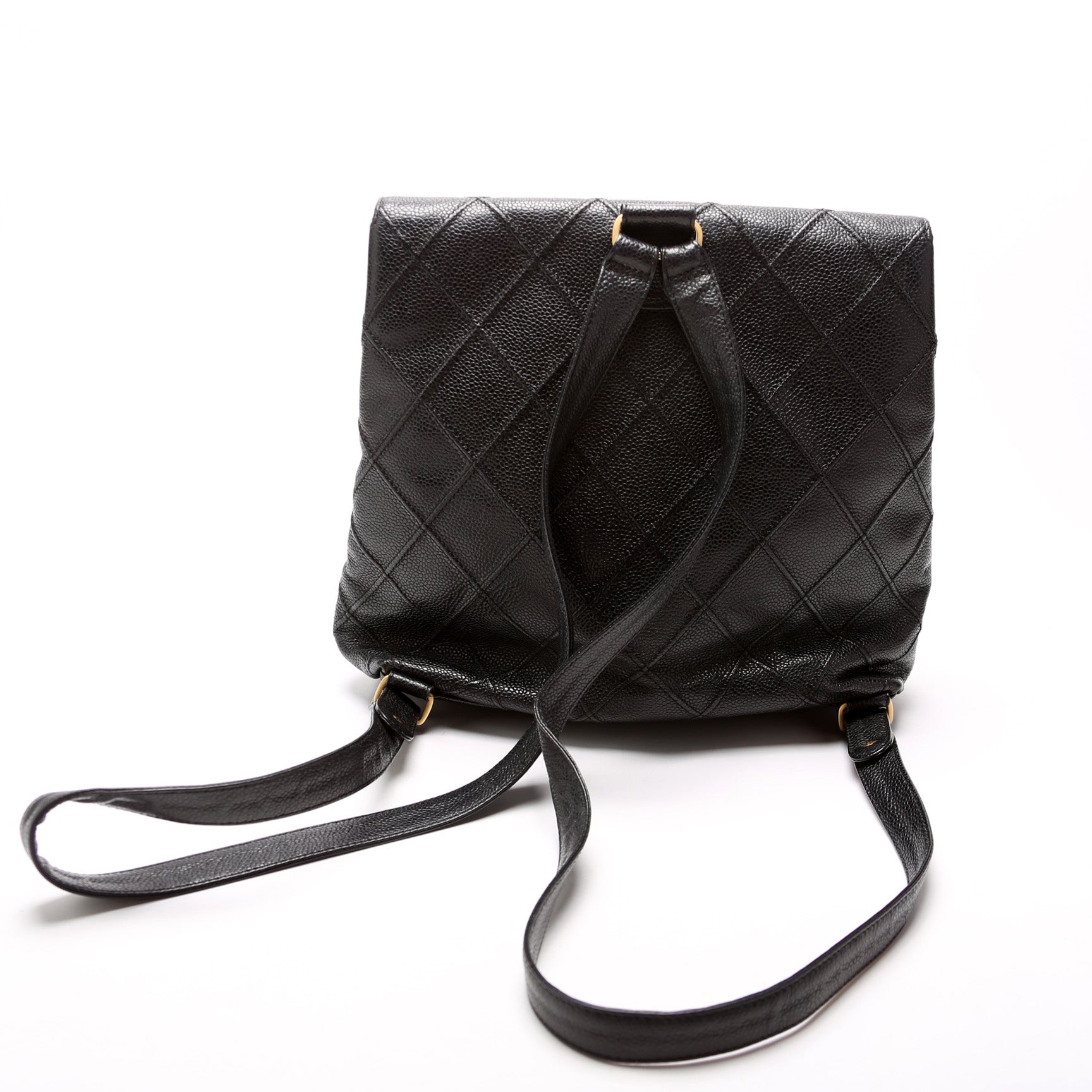 Chanel CC Square Quilted Vintage Backpack. The exterior is in the classic Caviar leather.Â