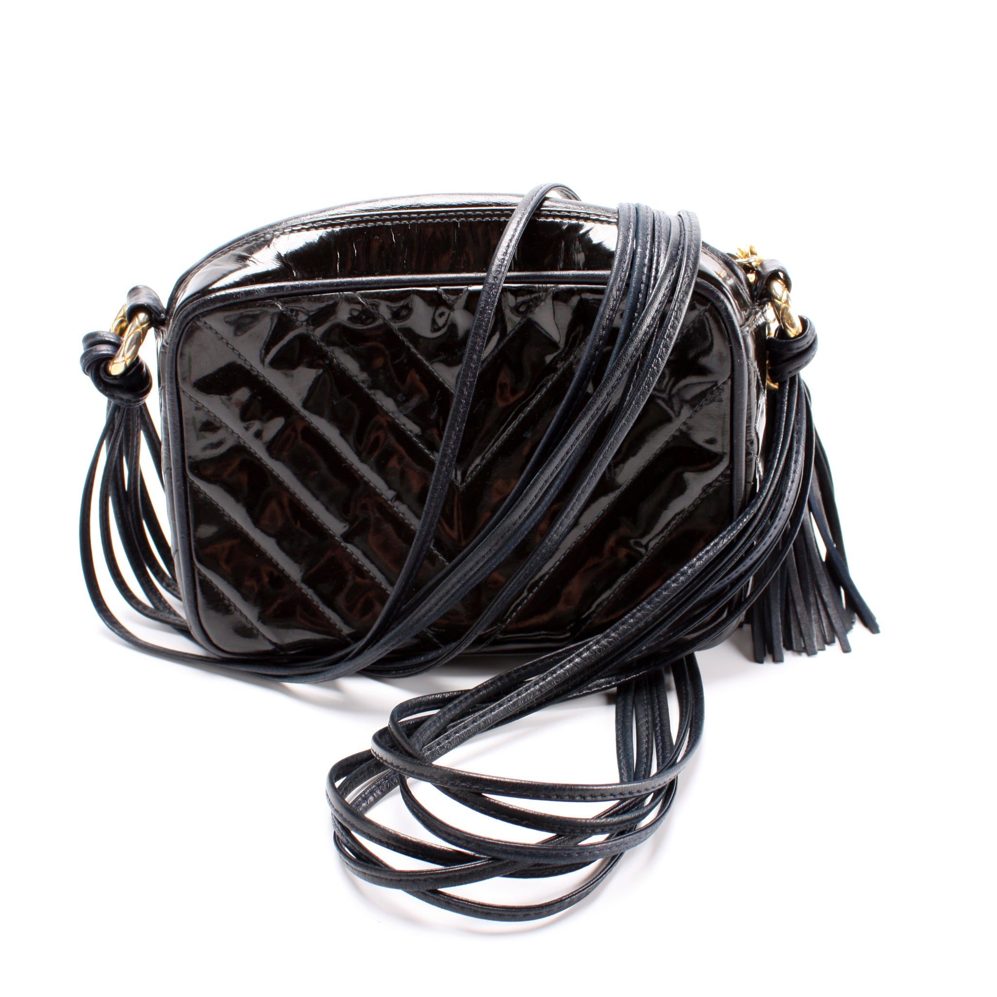 Exterior: The exterior leather has minor scuffs throughout, and the patent on the leather is starting to peel up. The corners show minor rubbing. The exterior shows one magnetic closure pocket.Â
