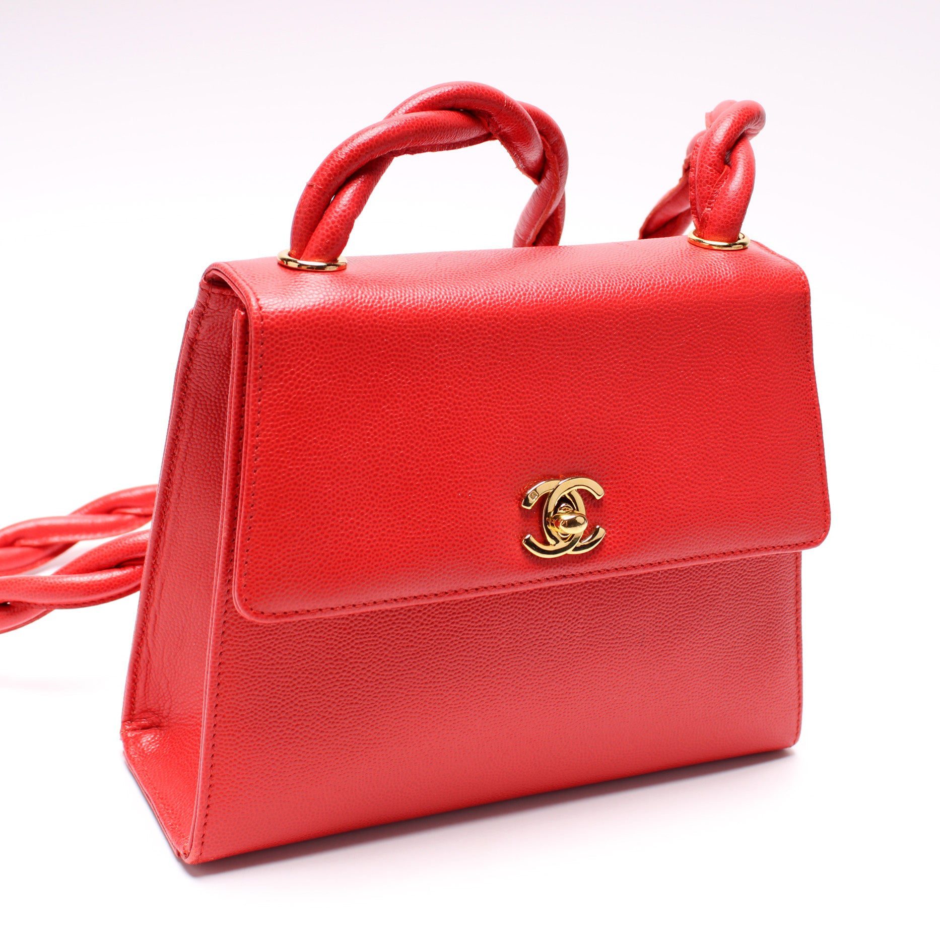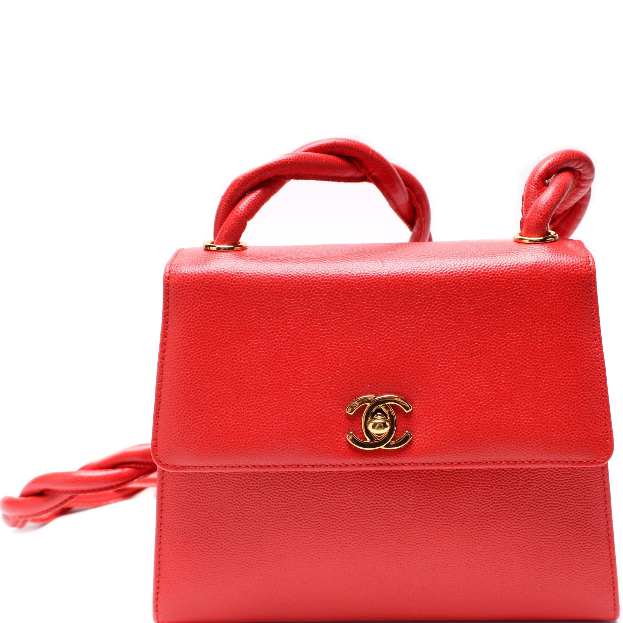 Chanel CC Trapezoid Twisted Strap. The exterior is in the classic Chanel caviar leather.Â