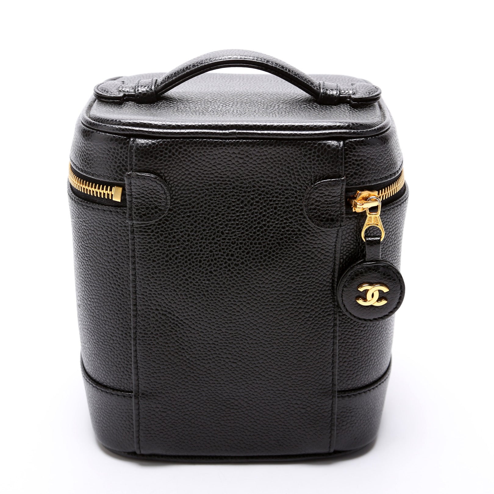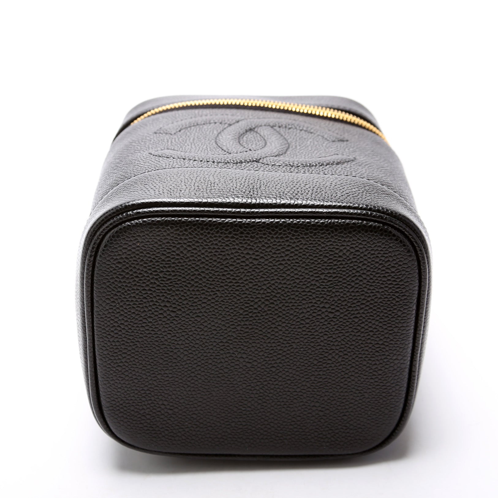 Chanel CC Vanity Case Small. The exterior is in the classic Chanel Caviar leather.