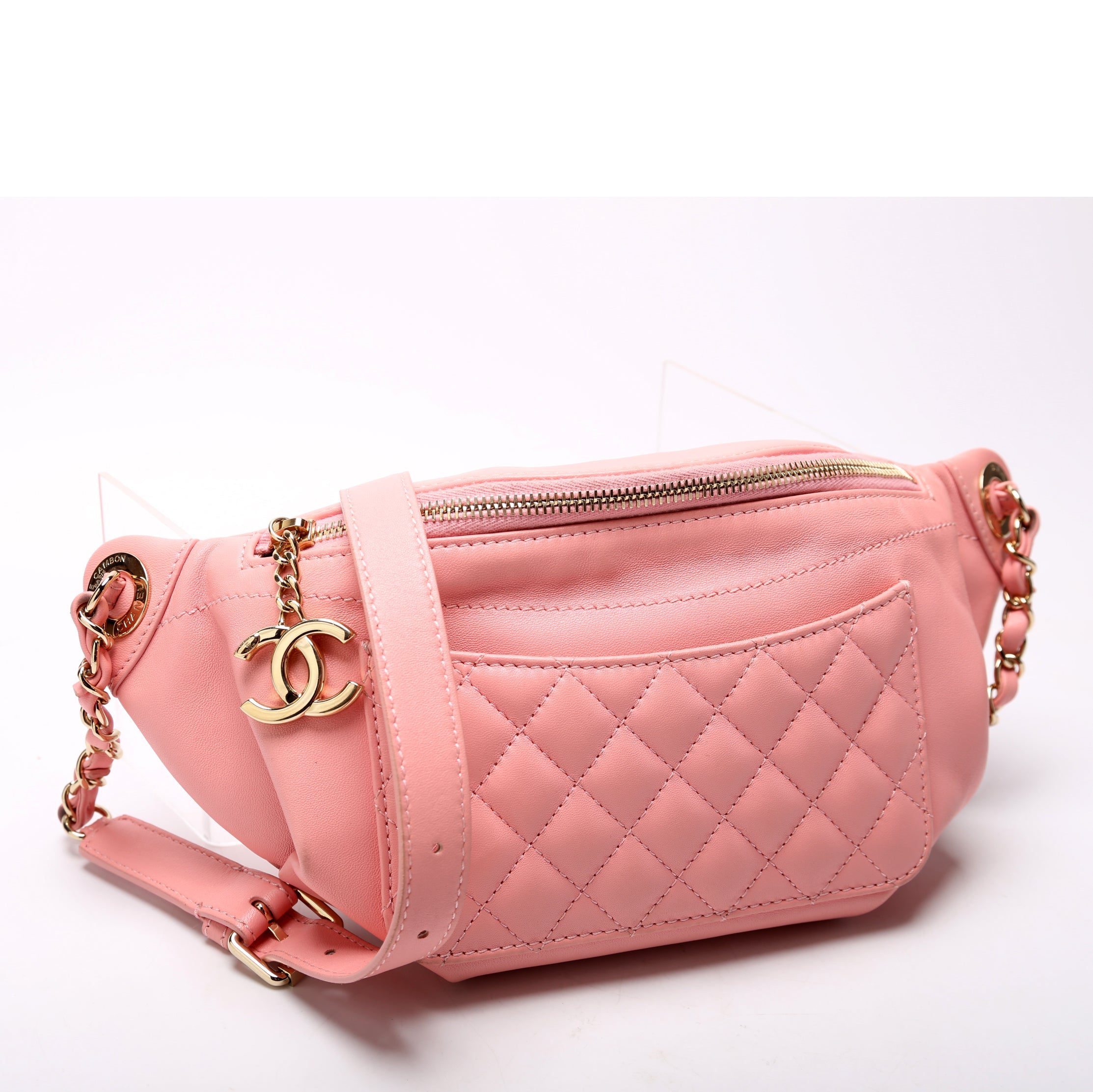 Chanel CC Waist Bag Quilted Lambskin 27M�. The exterior is in the classic Chanel Lambskin leather.Â